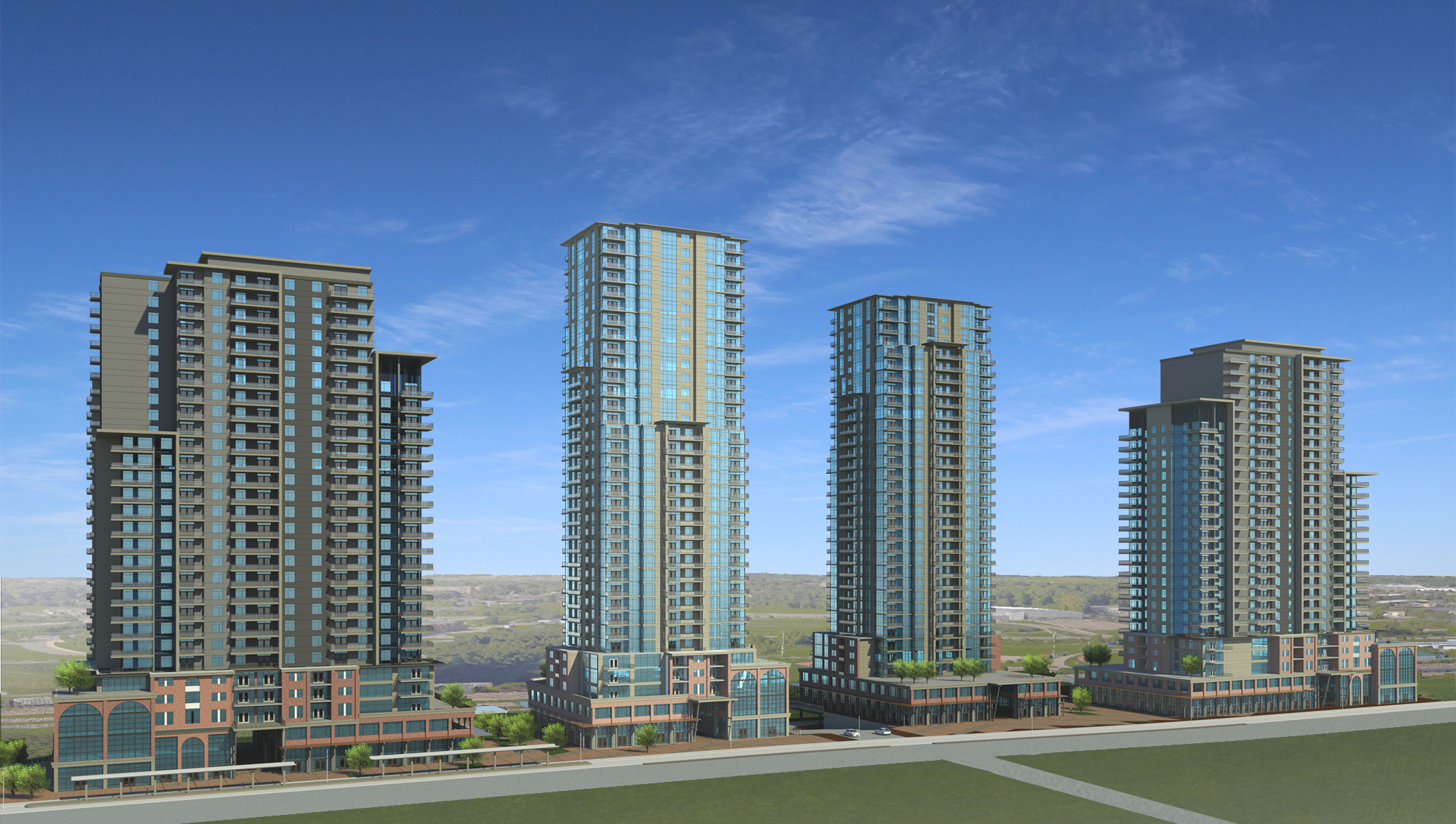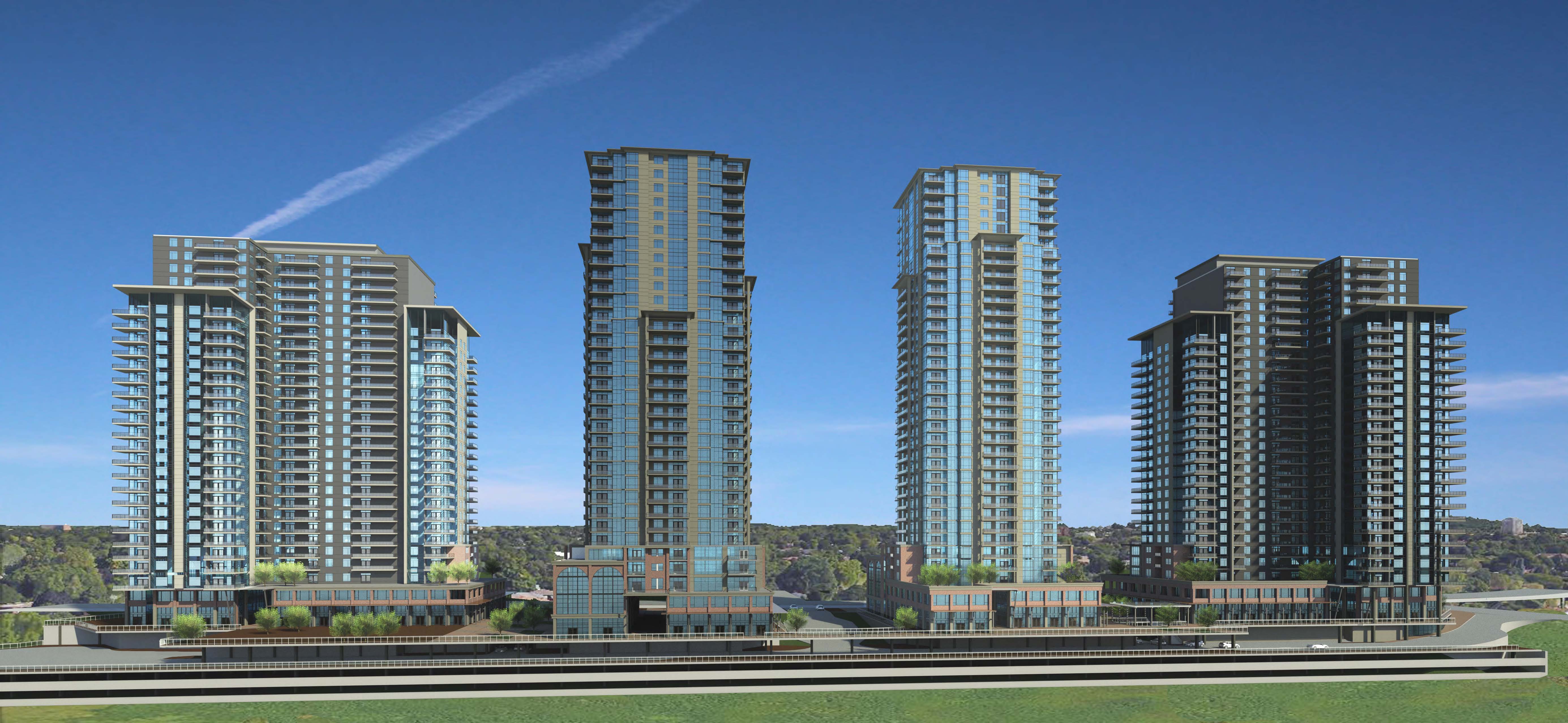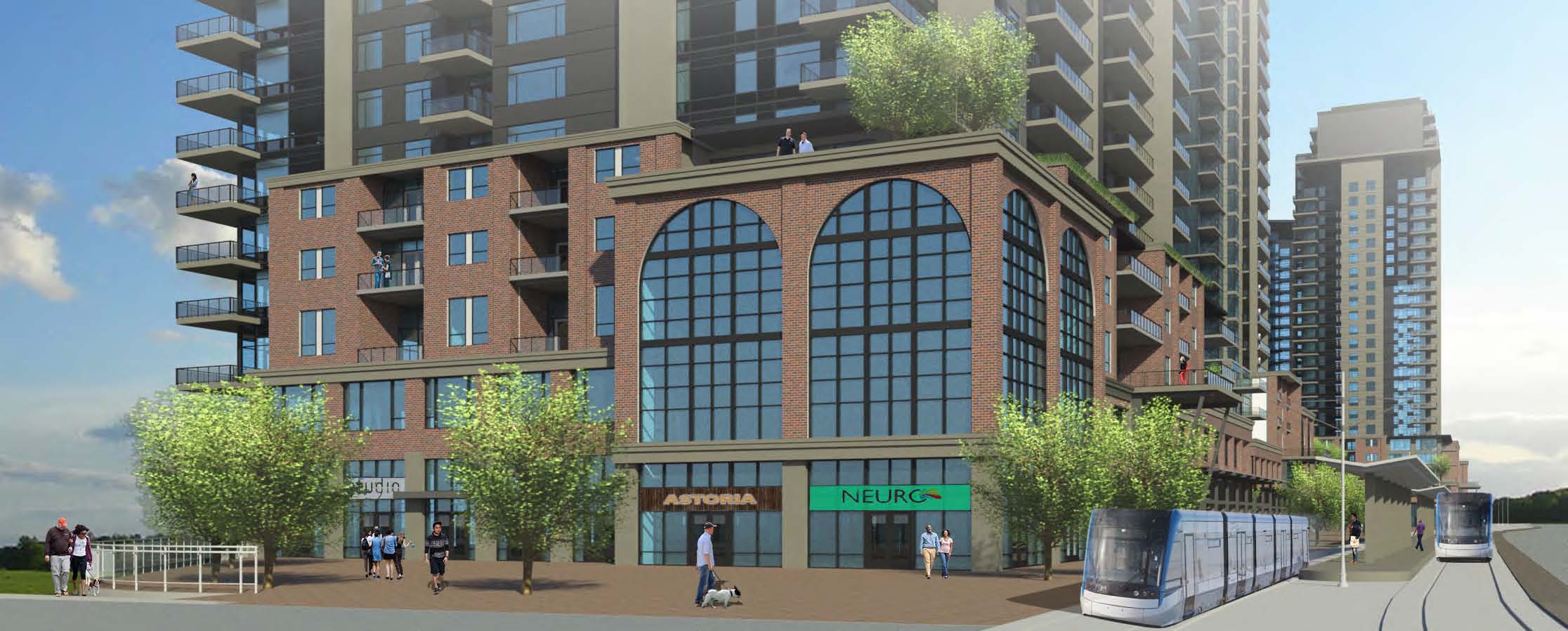 Project: 4 residential towers ranging from 29 to 35 storeys, with commercial and retail uses, adjacent to the Block Line ION stop.
