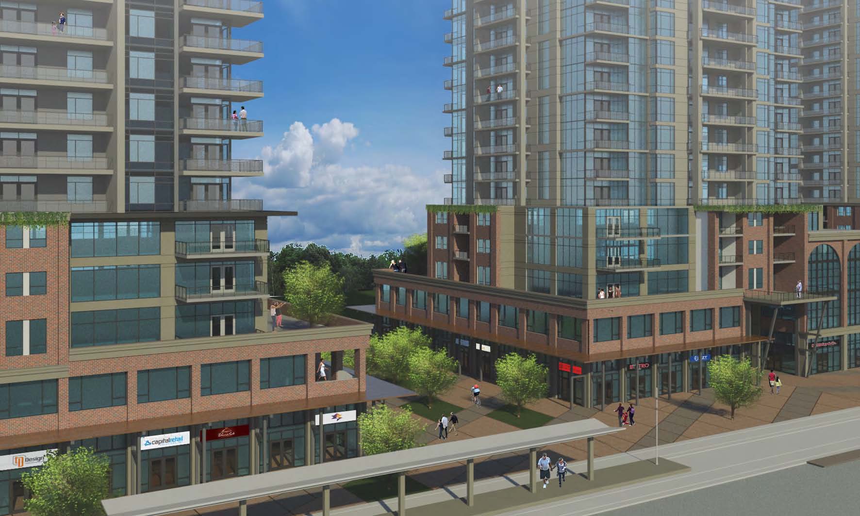 RE: Virerra Village | ?m | 12+m | Proposed - panamaniac - 05-29-2017 Glad of the development, but somebody please tell me it won't be another set of four identical towers! With the Fallowfield stuff in the background, it would be rather overwhelming, imo. RE: Virerra Village | ?m | 12+m | Proposed - Markster - 05-29-2017 The first floor is level with the platform! I like! And retail uses too! A coffee shop in that building will do quite well. I don't even care if it's 4 identical, architecturally uninteresting towers, if the street interaction for all of them is as promising as that render. RE: Virerra Village | ?m | 12+m | Proposed - GtwoK - 05-29-2017 Is this that project that Tom Galloway was hinting that he knew something about a while back> Also, won't this require either a HELL of a lot of ground infill, or a 6-ish story foundation, in order to deal with the large slope down to the CN tracks? RE: Virerra Village | ?m | 12+m | Proposed - jamincan - 05-29-2017 Perhaps they'll put the parking below the grade at Courtland instead of using fill? RE: Virerra Village | ?m | 12+m | Proposed - tomh009 - 05-29-2017 (05-29-2017, 12:56 PM)jamincan Wrote: Perhaps they'll put the parking below the grade at Courtland instead of using fill? Now that would be a good plan! And there is no parking podium in the render, so it may in fact be what they intending. RE: Virerra Village | ?m | 12+m | Proposed - KevinL - 05-29-2017 That would make perfect sense in that landscape. I'm excited for this, Block Line will be one of the stations I frequent and having retail presence so close wil be huge. RE: Virerra Village | ?m | 12+m | Proposed - rangersfan - 05-29-2017 Sounds exciting. Unfortunately for me my BlackBerry now blocks The Record, the site referenced above and doesn't load Imgur images anymore, I will have to use my imagination. RE: Virerra Village | ?m | 12+m | Proposed - mboos - 05-29-2017 More renders on their investment page: http://coreadvisory.ca/Opportunities/Past-Opportunities/virerra-village I see at least 3 levels of parking below the Courtland grade. And while they all have similar style, there are at least 2 different tower designs. RE: Virerra Village | ?m | 12+m | Proposed - Markster - 05-29-2017 Front: Back: Others: RE: Virerra Village | ?m | 12+m | Proposed - Markster - 05-29-2017 One more: RE: Virerra Village | ?m | 12+m | Proposed - GtwoK - 05-29-2017 Is the large amount of space between each tower a valid complaint or am I just being picky? Also: that's a REALLY ambitious amount of retail. Looks like EACH tower is supposed to have 6 or 7 stores? We'll see about that... RE: Virerra Village | ?m | 12+m | Proposed - Viewfromthe42 - 05-29-2017 Those renders are of two separate sets of buildings. If you look at the far left and right towers, in the "streetside" view, there is a horizontal "comb over" on the inside and outside of the buildings (ie. towards the other buildings and towards the extents of the lot). In the one view, the "inside comb over" and "outside comb over" are of different heights, but in the other view you can see enough of the "comb over" to see that it is the same height "inside" and "outside", and see sufficient wrap around to the front side to tell that it is not a case where only one corner is at a certain height. RE: Virerra Village | ?m | 12+m | Proposed - Markster - 05-29-2017 It looks like only 1 or 2 levels of retail/commercial to me. There are balconies on the 3rd level. (05-29-2017, 03:56 PM)Viewfromthe42 Wrote: Those renders are of two separate sets of buildings. If you look at the far left and right towers, in the "streetside" view, there is a horizontal "comb over" on the inside and outside of the buildings (ie. towards the other buildings and towards the extents of the lot). In the one view, the "inside comb over" and "outside comb over" are of different heights, but in the other view you can see enough of the "comb over" to see that it is the same height "inside" and "outside", and see sufficient wrap around to the front side to tell that it is not a case where only one corner is at a certain height. Um... they're the same buildings. The image names are "east" and "west" elevations. The exterior corners do indeed have different heights, but the angle doesn't show the north and south ends (the "sides") well enough to show where the one height ends and the other begins. It's a pretty straight-on or obstructed view of the sides. RE: Virerra Village | ?m | 12+m | Proposed - clasher - 05-29-2017 Not too shabby at all... |