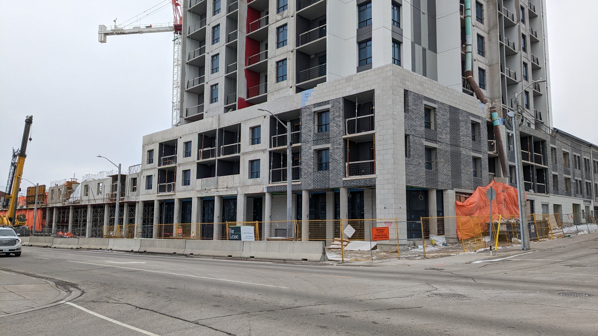 I think they'll be covered. The podium is typical Waterloo Region architecture: a grab bag of assorted materials resulting in a bizarre aesthetic. This one will be colorful.