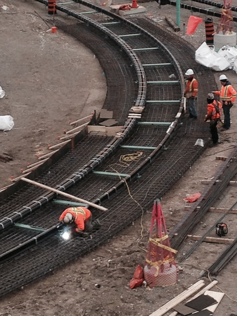 (10-28-2015, 12:48 PM)Canard Wrote: Anyone been by Benton/Charles today? Hopefully all that hard work doing the temporary precision alignment of the track hasn't been washed away with the torrential downpour. It looks fine. Rebar being welded today.