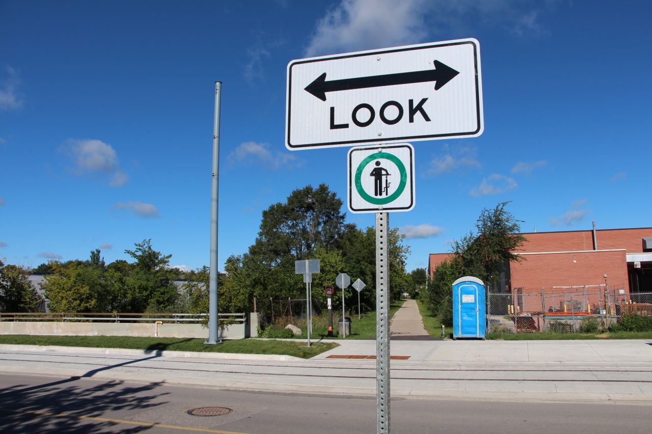 (09-11-2016, 09:27 PM)Canard Wrote: New signage along Borden - Westbound only, so I can only assume these are meant for the LRV operators. A bit strange, since you think it'd be covered during training. Signage this prominent is usually reserved for situations where you might have someone who's not familiar with an area traveling through it.[/i]