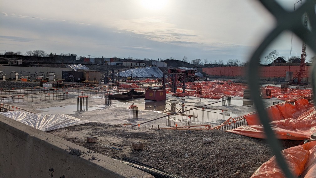 (04-12-2025, 09:18 PM)ZEBuilder Wrote: Along Palmer they don't have hoarding so you can see into the site, as long as you don't mind some mud.I took some pictures at the same place today, but I am too unsteady on my feet to get close enough to the fence. I didn't know that you had already posted a picture. Here is a picture taken through the gate at the other end. They finally fixed the sidewalk so it is passable for pedestrians.