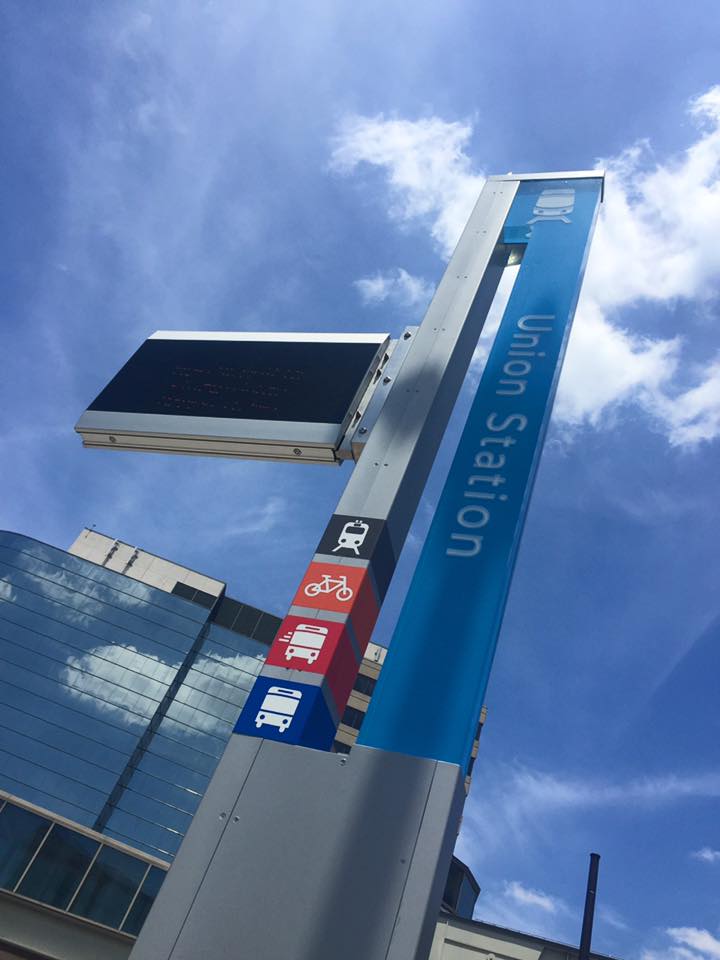 After following the construction of the Kansas City Streetcar project, I got to ride it today! We're on a big Midwest US road trip (2700 km and counting) right now, and one of our stops is Kansas City. This is a great little system that came in on-time and under-budget, and is heavily used. Every train I saw today was packed. It connects Kansas City's (absolutely massive!) Union Station with their thriving Riverfront District. The line uses CAF Urbos3 trams, which have the same type of fixed-bogie configuration that our Bombardier FLEXITY trams will have (just 2 fewer modules). The line does not run in a dedicated ROW, so traffic does have to wait and gets hung up a bit... but they have maintained a massive amount of (free) parking all along the entire route, so I think that's a very fair compromise.