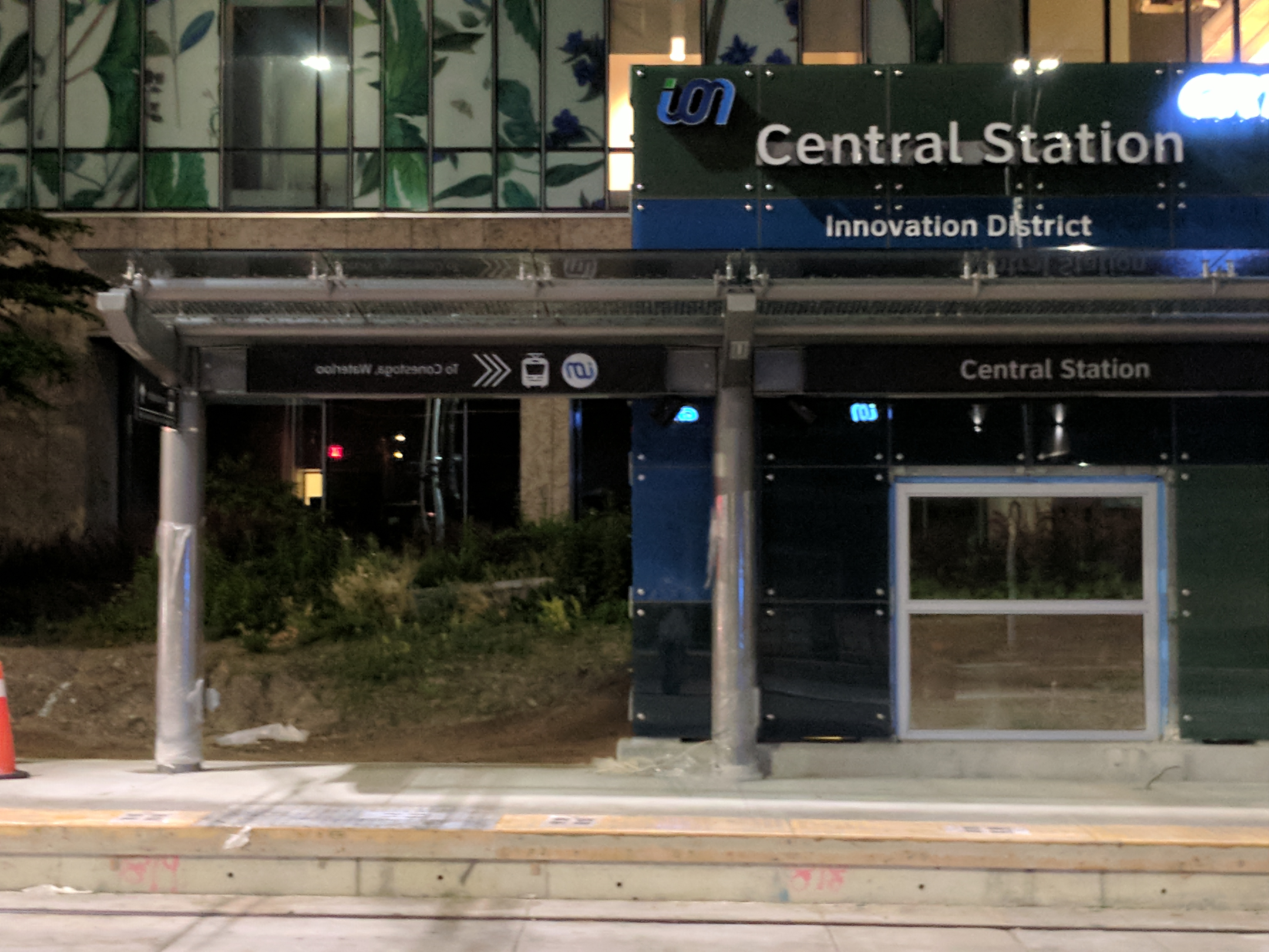 ...and here's the southbound Central Station stop, complete with another backwards sign. (Well, it's right in some sense.)
