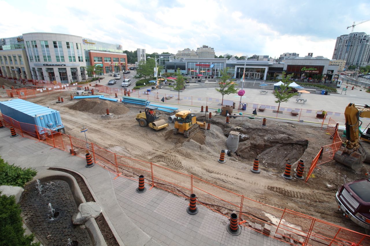 I don't know why I didn't think to pop up here before, but the Parkade in Uptown Waterloo offers great vantage point of construction along King. The ride up to the third deck is pretty easy, too!