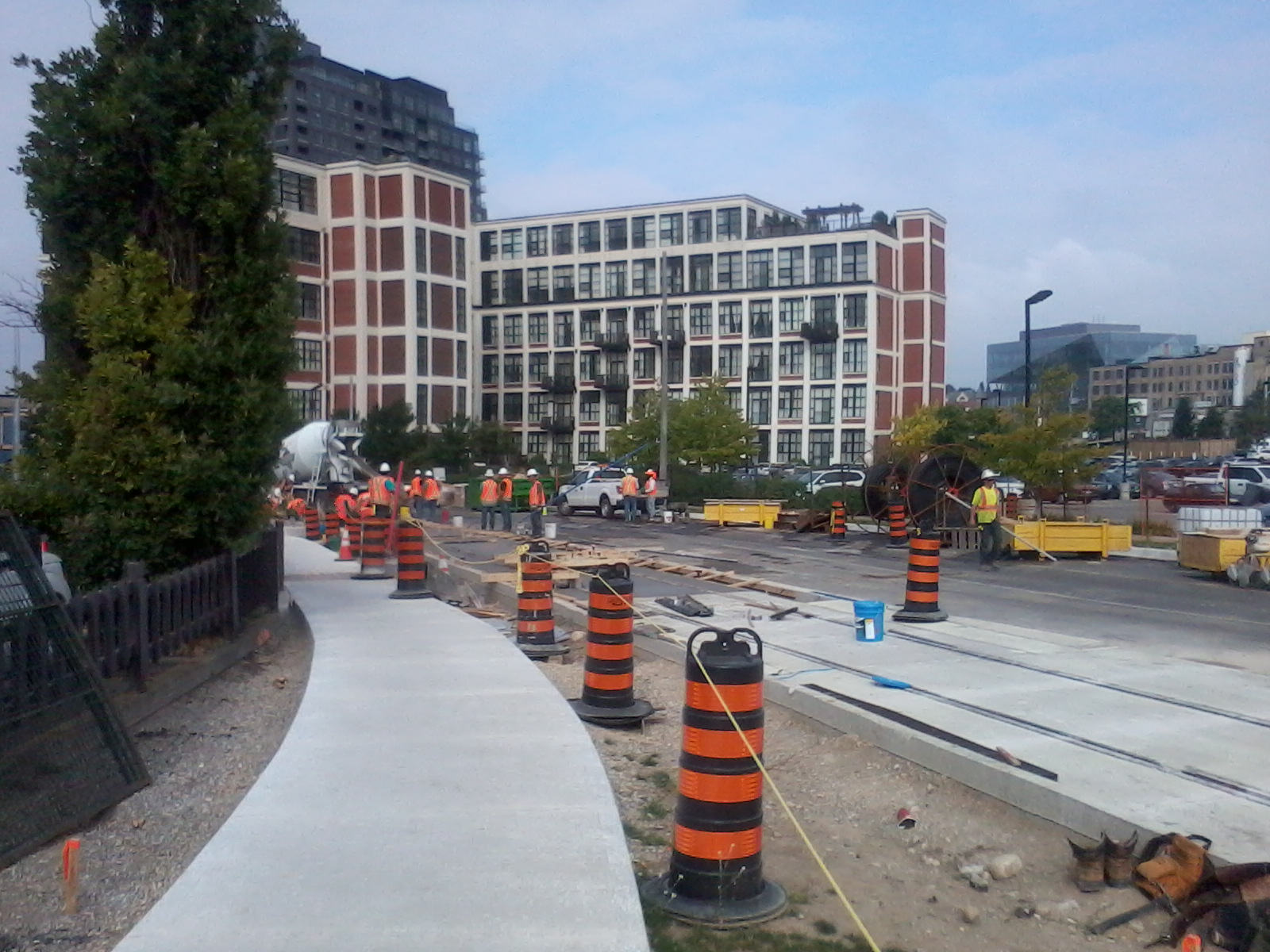 -on King between Union and John with concrete pouring of the NB track