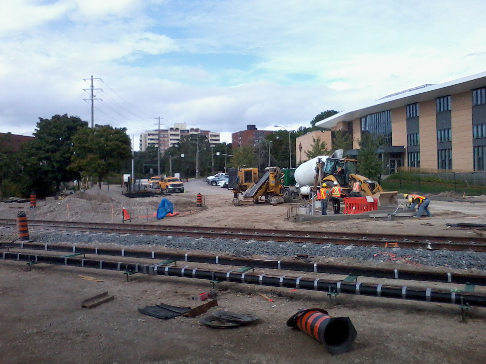 Embedded track concrete has now been poured at the Borden Ave intersection: