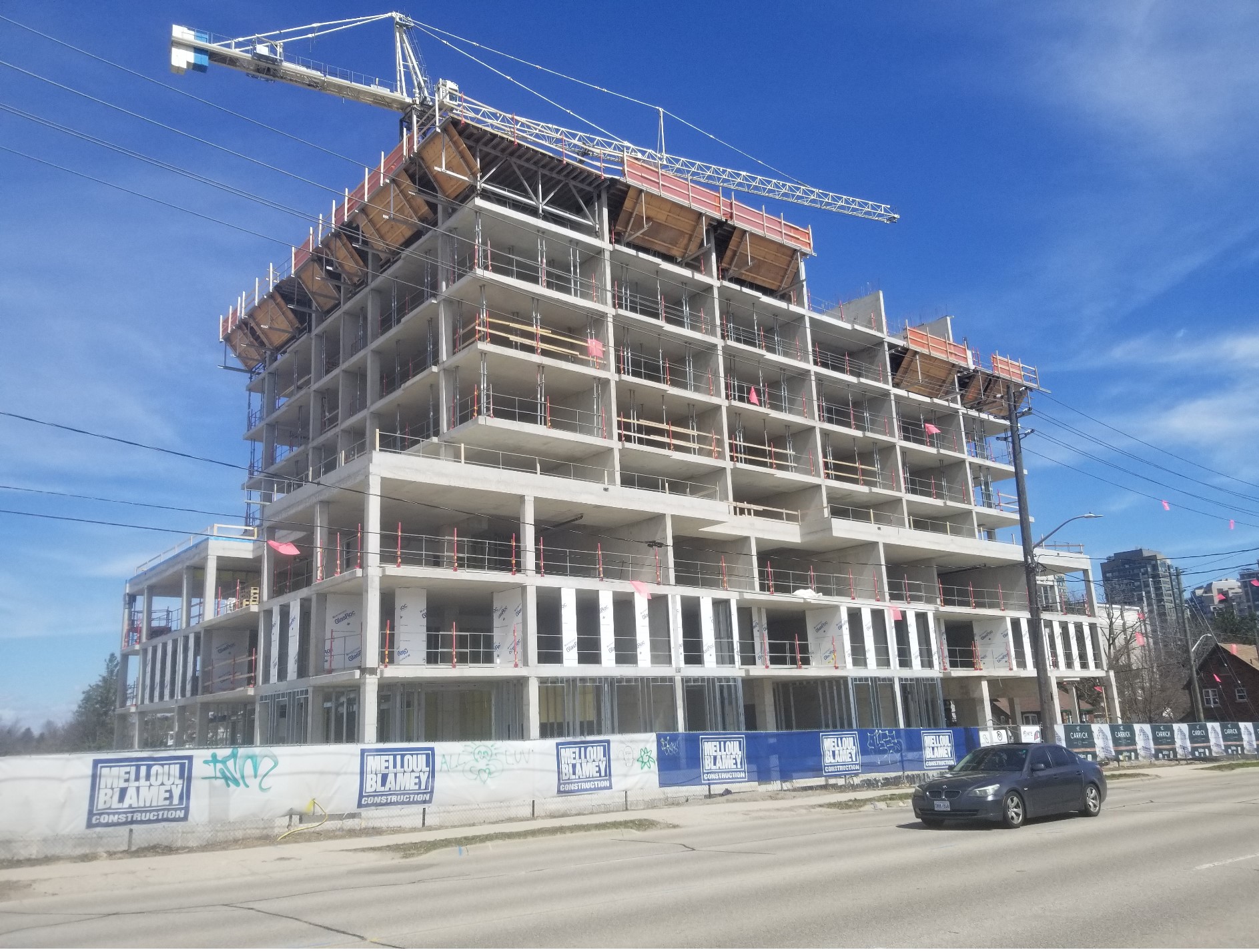 That last photo Jan 22nd was the 4th floor slab. Now 2.5 months later they are working on the 9th floor slab. That's a floor per two weeks. There's 10,11,12, and roof left. The roof always seems to take a bit longer so call it two floors, so maybe 2.5 more months and the structure could be finished.