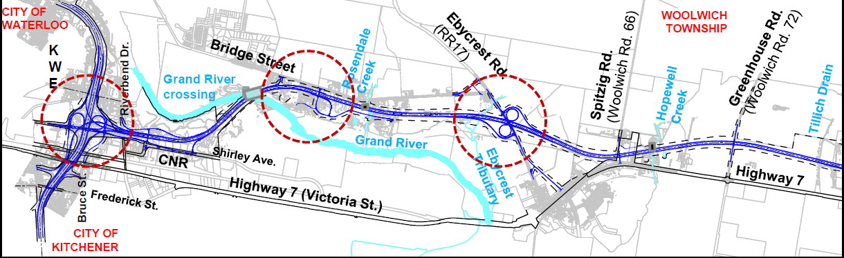 Quote:The Ministry of Transportation has released more details about the impending expansion of Highway 7 – including when and where construction will begin. Seems to be some confusion in the video clip about the Victoria Street bridge replacement, I can only assume this is the replacement (widening) of the bridge over the expressway to allow the new road configuration below.