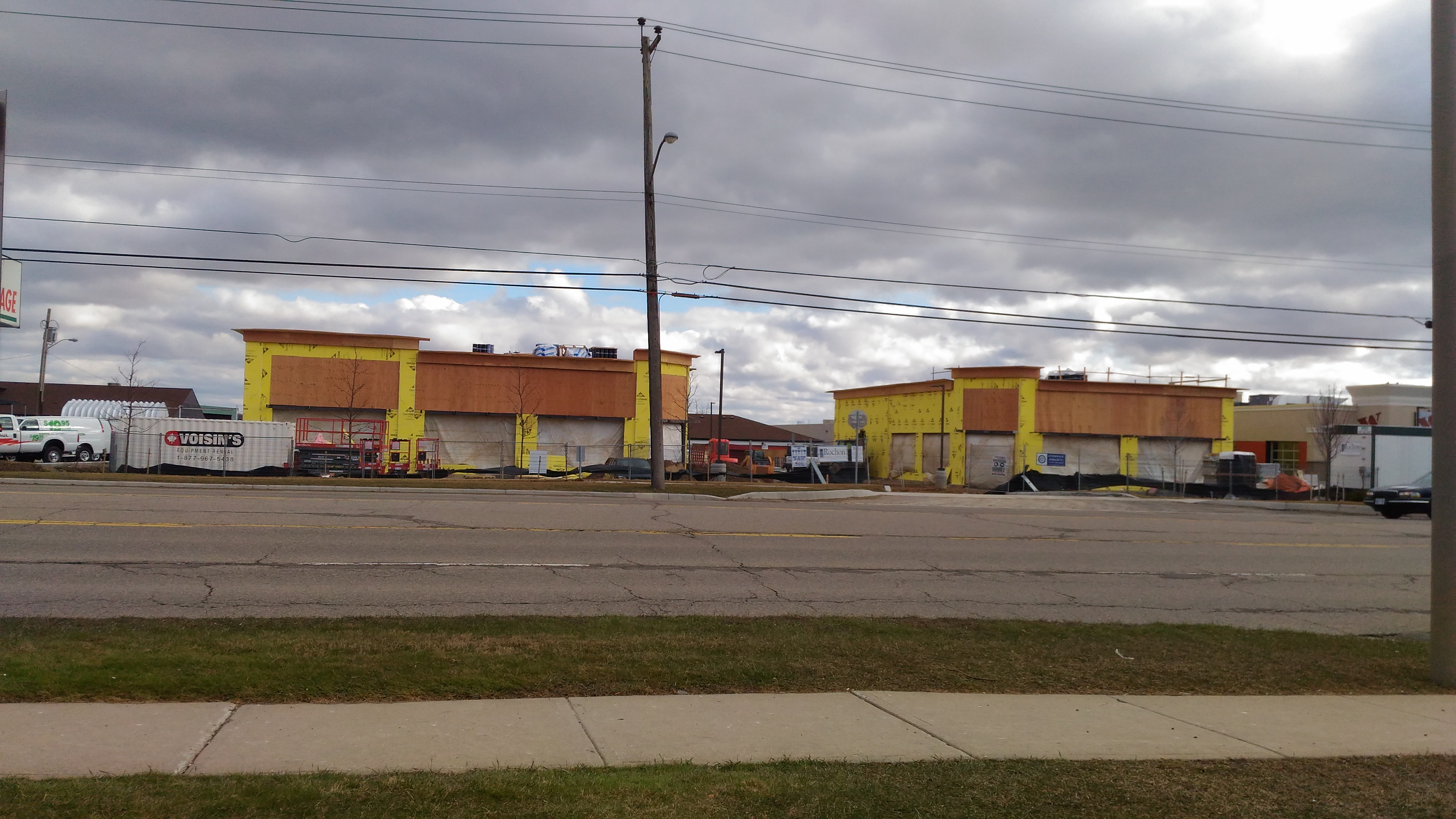 So it seems the entire plaza is being completely trashed and rebuilt, save for Tim Hortons and Dairy Queen. Hm. On one hand, I'm happy it's being modernized, but on the other, it's going from being a Plaza in the center of a parking lot to a Plaza surrounding a parking lot, with its back to the street. Quite unfortunate.