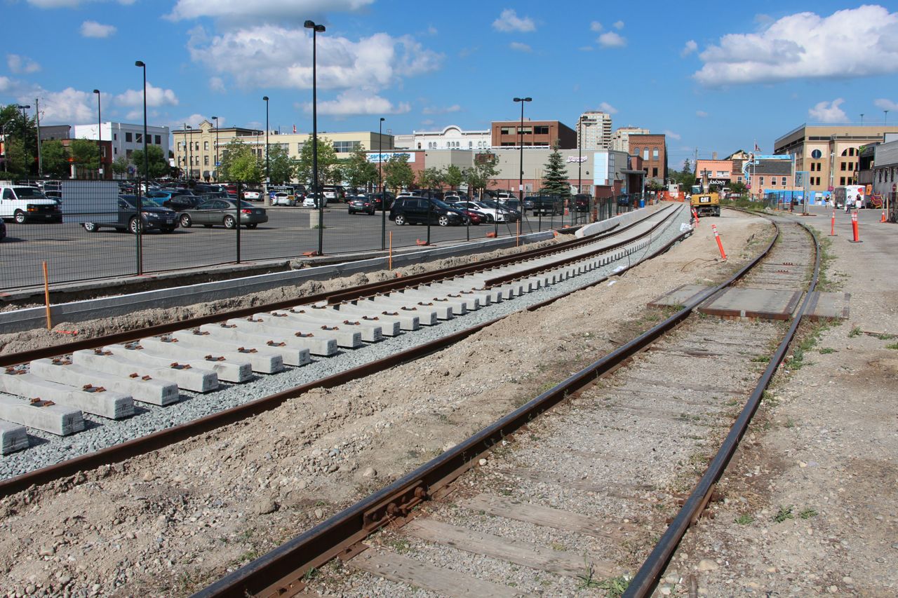 Track for the new freight line has gone in. This is the switch where the freight traffic will connect to the ion track. Another shot of the new freight line.