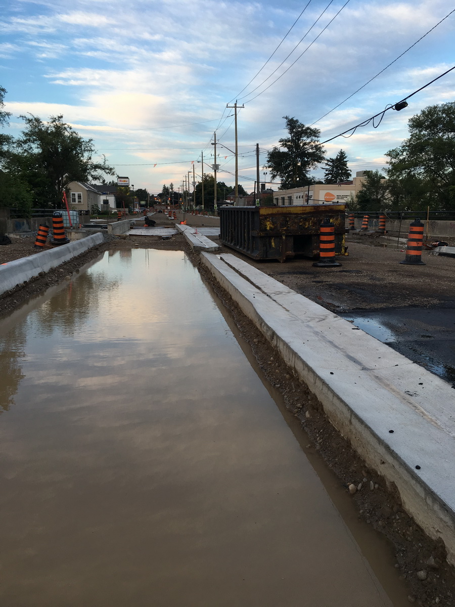 Future crossover on Charles, in front of Cameron Heights: A view of Ottawa, from near Charles. Pavement first, but the Schneider Creek bridge and beyond have no pavement. Ottawa Creek? It seems that there are a lot of new rivers in Kitchener ...