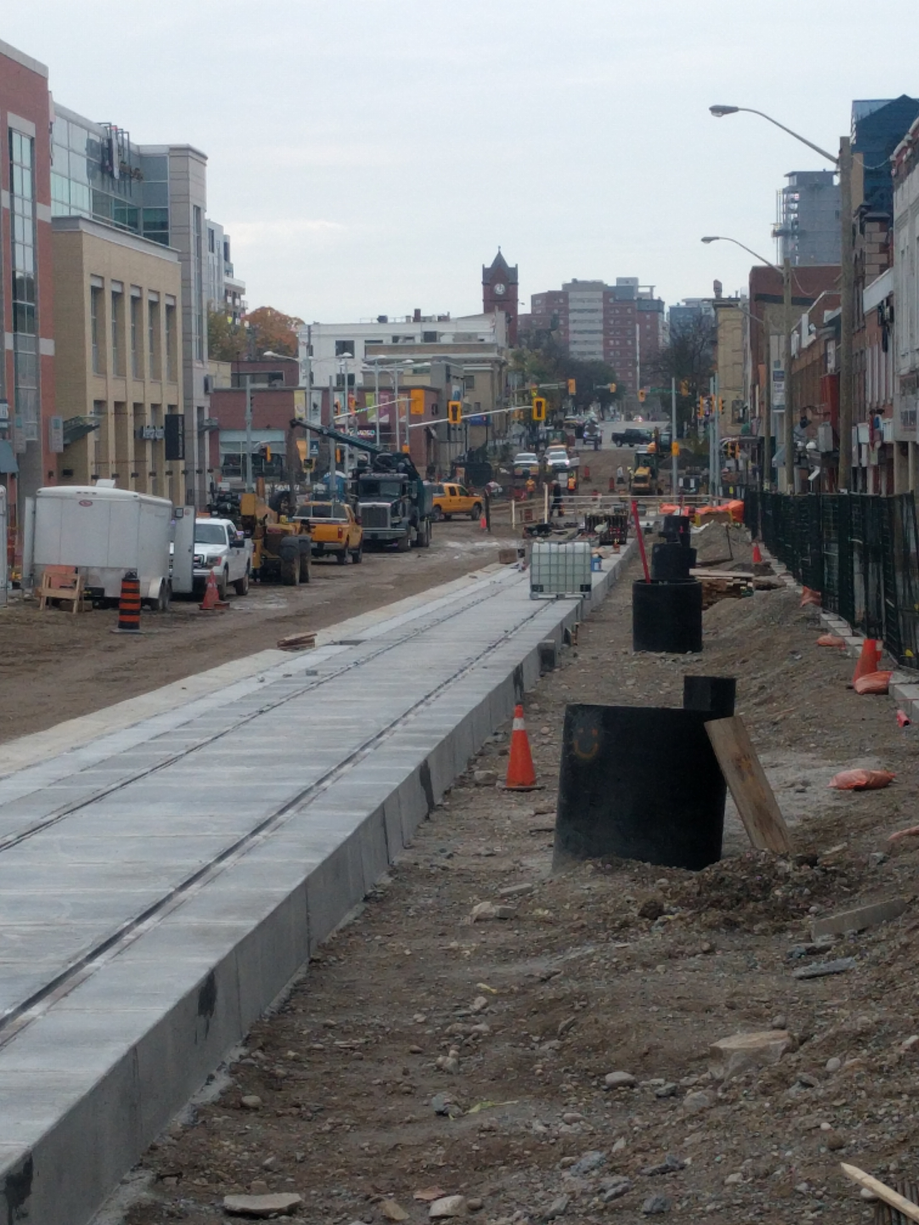 The track curve from Ottawa, onto Charles, is now completely poured and is curing.