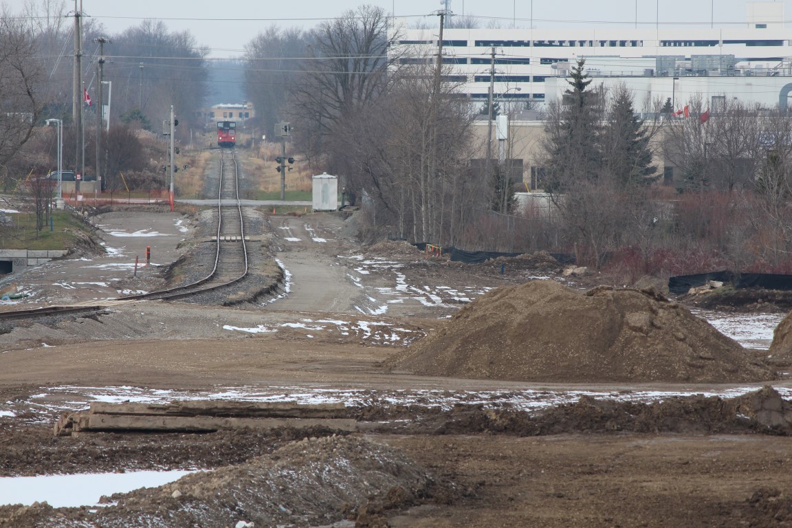 LRT Progress at Columbia in Waterloo, first looking South (U of W in the distance), second looking North.