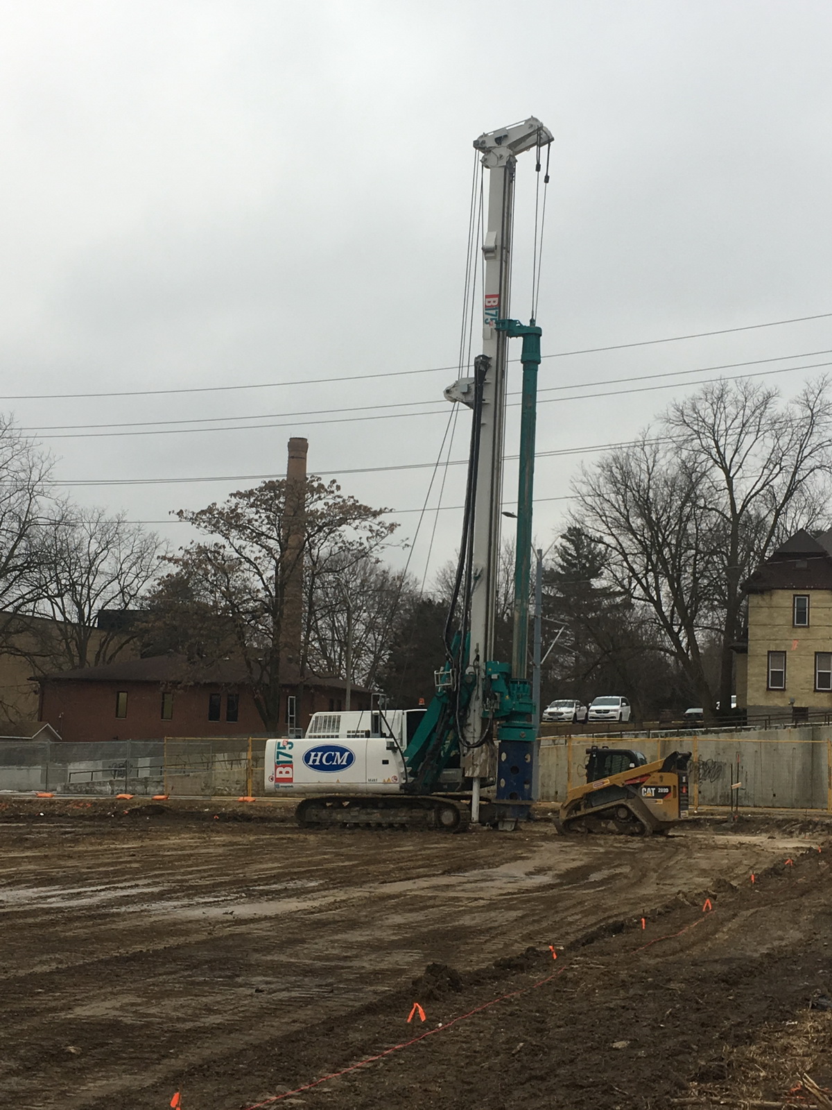 Shoring drill is up and running, going along the Madison side of the property starting from King.