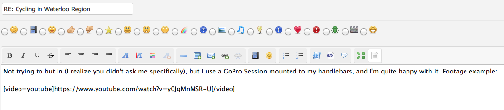 RE: Other Forum Issues - Canard - 08-14-2016 I'm guessing it's just me (I was playing around with my settings the other day), but I can't seem to get the embedded video function to work anymore. Here's what the code looks like: Here's what the editor looks like, if I turn off View Codes (the preview shows correctly here): But here's what the post looks like for me: Any ideas? EDIT/UPDATE - Sigh. I'm an idiot... I must have accidentally reset a bunch of options somehow. I was digging around in my settings the other day on my phone and probably mucked it all up. I'll leave this post, in case it helps others in future, but here's the section in the User Control Panel that I had accidentally disabled: All's good now! RE: Other Forum Issues - panamaniac - 06-21-2017 What's with all the span threads this last couple of days? It's like a plague.