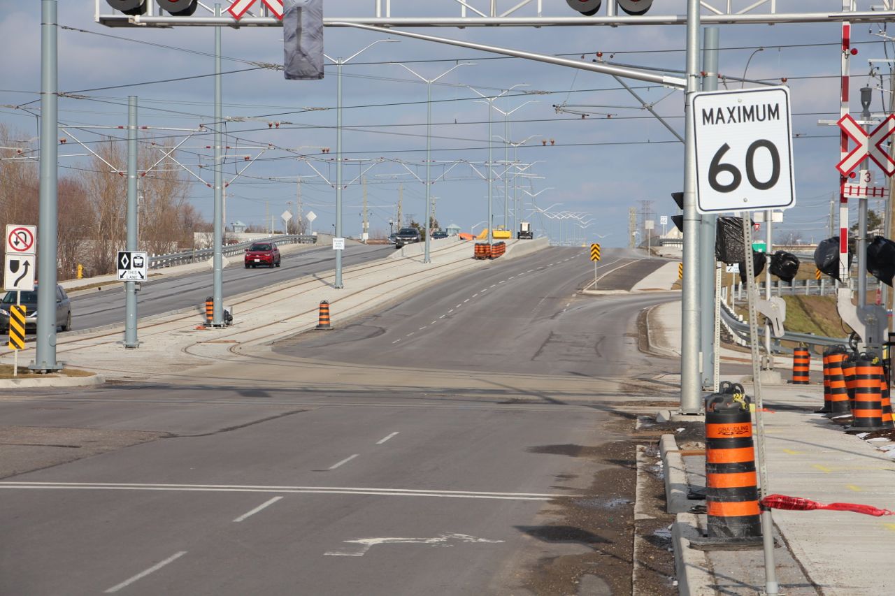 RE: ION - Waterloo Region's Light Rail Transit - Canard - 03-01-2017 2/2 - Sunday, February 26, 2017 Kitchener City Hall station. Speed limit signs for unlikely "wrong way" operation have now been added to a number of places along the line. The ones on Charles are especially confusing, with different speeds directly on top of one another, angled only slightly toward the respective track. From the Willis Way platform, showing the "No Turn" signs, and the hideous light fixtures. I'm told these are "Waterloo City standard" - so blame them! Confusing lane markings on the Northfield Bridge for cyclists (sorry). Half of the hoarding is down at Waterloo Town Square. RE: ION - Waterloo Region's Light Rail Transit - ijmorlan - 03-01-2017 (03-01-2017, 10:04 PM)dunkalunk Wrote: This is just an opinion, but I kind of thought a dynamically glowing logo took away from the brand value of the ION logo. Also, afaik, ION stations are still going to have real-time displays, and GTFS real-time data as well as Transit App's approach to real-time data is only going to improve with time. Well, I don’t know about the brand value part, but there is something cool about the concept of something about the station changing as the vehicle approaches, not just the number displayed on a LED screen. And I agree with Canard: if making the logo do that isn’t easy, there is something wrong with our technology and the technical culture in which it exists. RE: ION - Waterloo Region's Light Rail Transit - Canard - 03-01-2017 It's also visible from much further away. If you're 100 m away, you can't read the LED signboard on the platform. But you can see the logo pulsing and know you'd better book it. A really cynical and pessimistic part of me wonders if this is exactly why they aren't doing it - fears that people will run for a train and get hit by it in the process. RE: ION - Waterloo Region's Light Rail Transit - trainspotter139 - 03-01-2017 (03-01-2017, 10:10 PM)Canard Wrote: 1/2 - Sunday, February 26, 2017 These signs operate in more of a binary fashion for trains. Either on or off. When it comes down to the dimmable/pulsing sign it's more complex. There are multiple ways to programmably dim an LED each one has it's own disadvantages. The most appropriate method (Digital Addressable Lighting Interface) is quite expensive and requires some pretty sophisticated programming to achieve what we would be looking for. There's also an accuracy question. The No Turn TRAIN signs activate when the train is within a set distance from the controlled area (and usually through some sort of track ciruit, induction loop sensor or other sensor method). How accurate would we want the dimmable/pulsing sign? Would we want the sign to pulse faster the closer the train is? Or would the sign simply get brighter the closer the train is? How accurately can we track the train? What happens if there are gaps in train location data? These are all RE: ION - Waterloo Region's Light Rail Transit - rangersfan - 03-02-2017 In my experience (maybe this is a gross simplification of the issue) the most common way of changing brightness of an LED is through pulse width modulation, which can be a fairly straightforward circuit and firmware . I don't have any idea how complex this lighting fixture would be compared to a standard LED, whether it consisted of 1 LED or 100s but I would have thought something like this would have been specified in the contract with Grandlinq. RE: ION - Waterloo Region's Light Rail Transit - Canard - 03-02-2017 Trainspotter: Washington DC figured out how to do it in the 70's. It is not hard. Anyway, it turns out the reason why it's not happening isn't technical. RE: ION - Waterloo Region's Light Rail Transit - Elmira Guy - 03-02-2017 /\ Purely a question of cost? RE: ION - Waterloo Region's Light Rail Transit - bpoland - 03-02-2017 The light-up iON logo does sound cool but I always wondered how you would be able to tell which way the upcoming train was going, from a distance. If it only lit up on the side that was coming then it wouldn't help you if you were approaching from the wrong side of the platform. RE: ION - Waterloo Region's Light Rail Transit - Canard - 03-02-2017 Aspect Signals are all on between at least Erb/Caroline and South as far as about Ontario, I think. I noticed today for the first time that Water actually doesn't have any. Mass Electric was setting up at Borden/Charles, getting ready to string the next strand of Contact Wire down along Borden/the Huron Spur, up to the next tensioner. RE: ION - Waterloo Region's Light Rail Transit - UrbanCanoe - 03-02-2017 More of the hoarding at Waterloo Town Square is coming down today. Also looks like they're preparing to continue pouring the station platform. RE: ION - Waterloo Region's Light Rail Transit - UrbanCanoe - 03-03-2017 LRT lights are operational this morning at intersections on Charles (at Water and Gaukel). It almost looked like a train might come around the corner, but the lack of catenary cables squashed that excitement . I wonder if having these lights operating so early will help educate motorists/pedestrians or make them complacent.RE: ION - Waterloo Region's Light Rail Transit - nms - 03-03-2017 Personally, as a driver encountering this kind of signal for the first time (at William and Caroline), I was confused. My first assumption, based on its general location, was that the signal was a malfunctioning pedestrian signal. If I recall correctly, this lit portion of the signal is the lower of two boxes that looks similar to a pedestrian signal. Perhaps when I see both the top and bottom boxes lit while the system is working, it will become more clear. RE: ION - Waterloo Region's Light Rail Transit - Canard - 03-03-2017 Lower lamp is "-", or stop. The upper lamp is "|", or proceed. They really should have had the safety campaign mention this (and push it a little harder toward the media) before powering them up. That being said, a big red light still mean