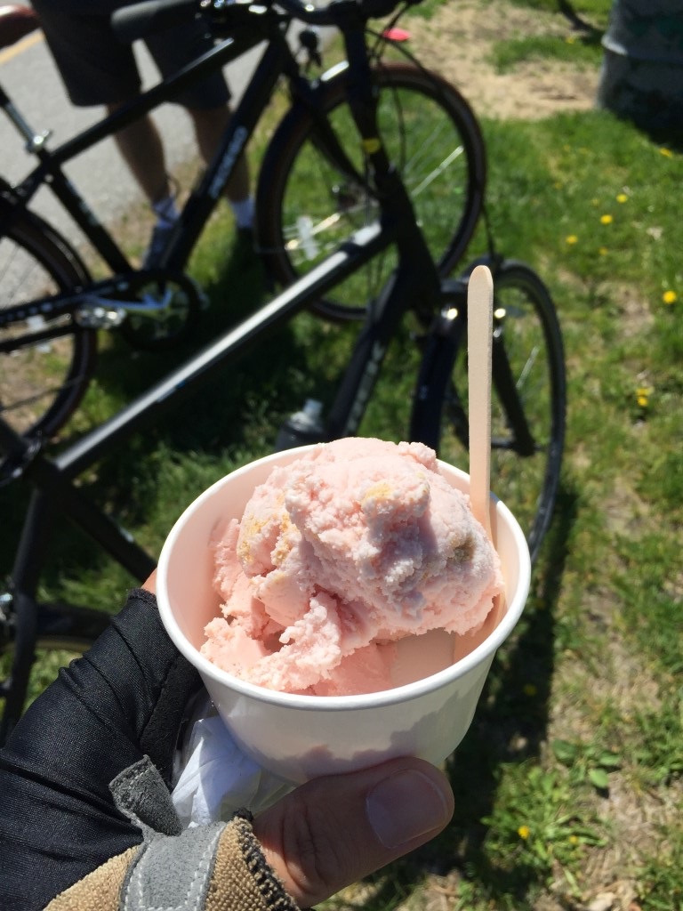 ...and it gets better and better! This chunk has a fully separated (with a CURB!!!!!) cycle path and pedestrian path, both reasonably wide... and everyone was behaving. At one point there was a group of about 30 kids coming toward us and they were all perfectly single file, and I could hear them all ding their bells at a pedestrian entry point. Gah!!