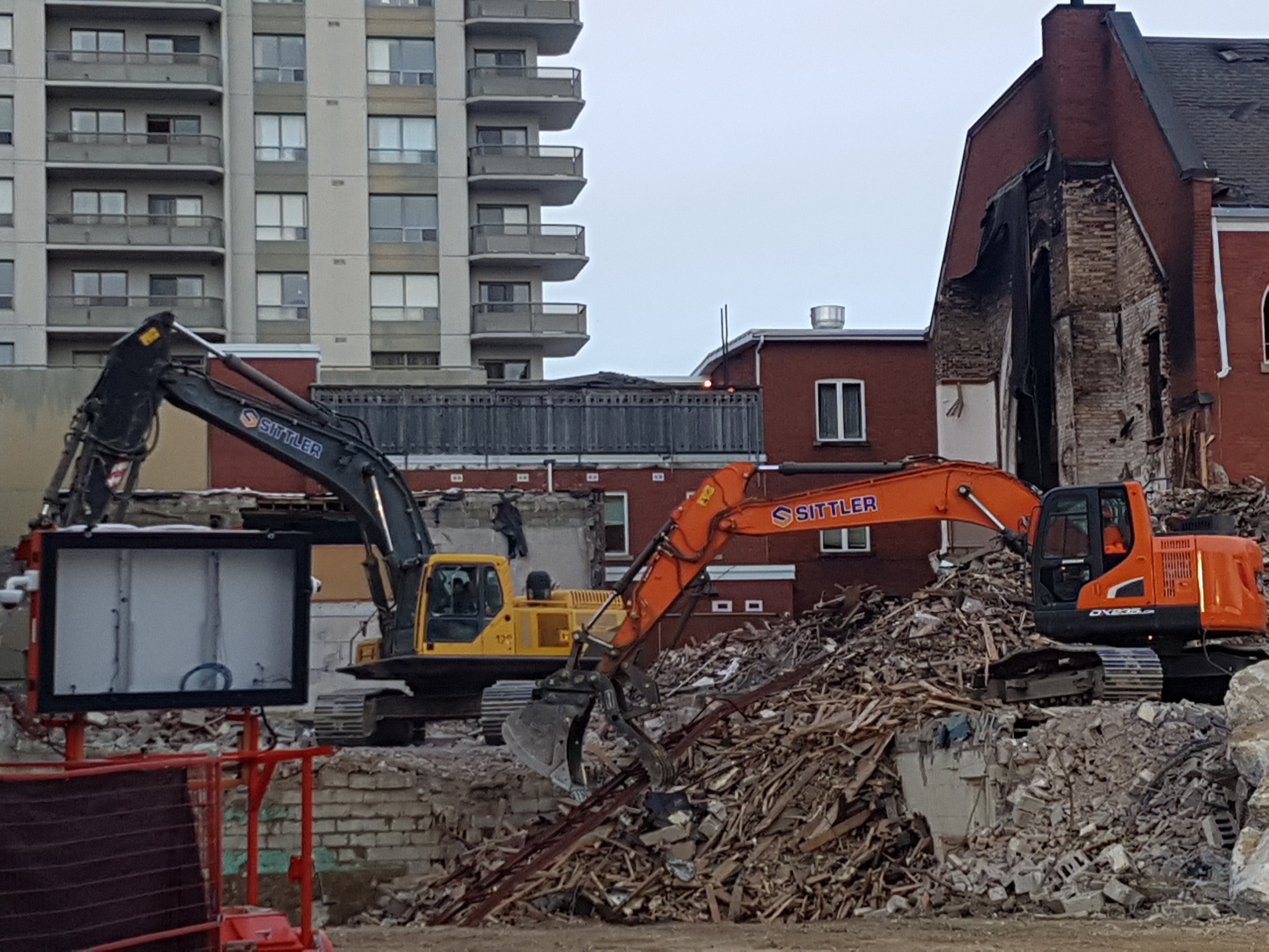After a few days of digging down into the ground it seems like a lot of progress was made on the back building today. The back wall of the church is also gone now.