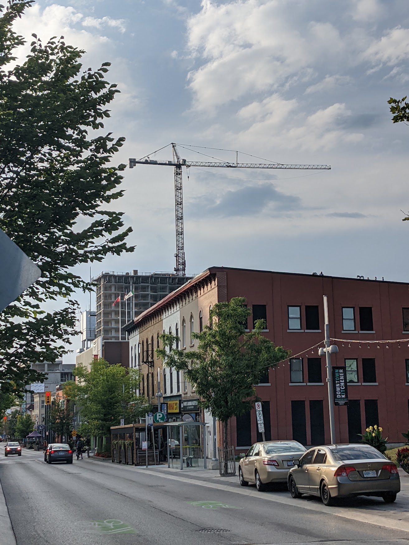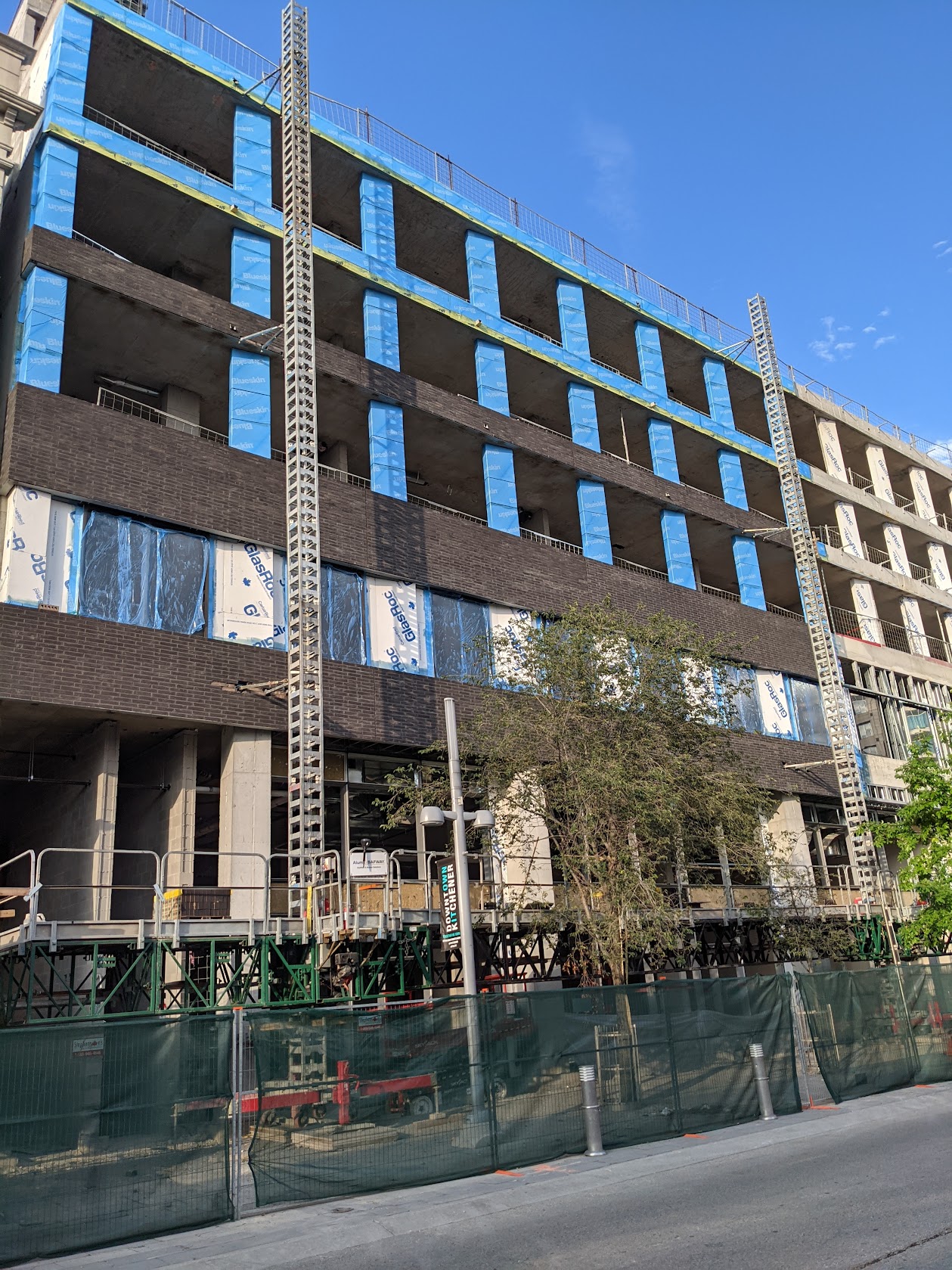 Crane was raised here today, and the brickwork for the King St facade appears to be progressing rapidly. Hopefully the King St sidewalk will reopen soon.