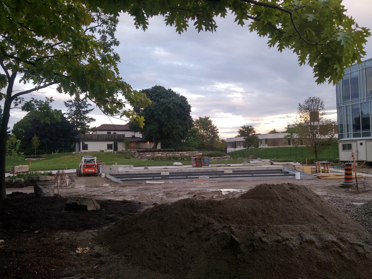 The new central corridor through UW has had a lot of progress. The central path part should be complete in time for classes in September. I'm not sure what that trapezoid is.