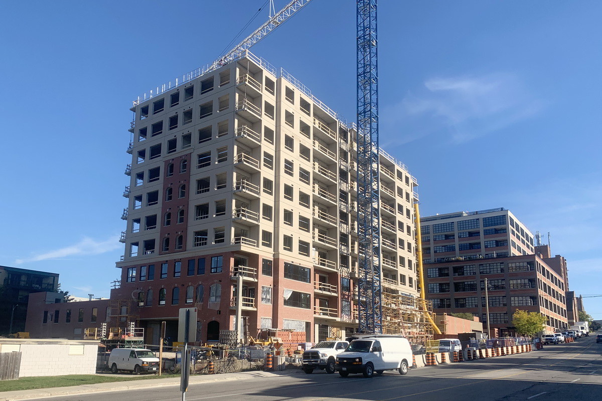 My bad the beige makes the concrete panels look a lot like EIFS panels. I feel like knowing somehow makes this building worse. They could have easily made this a taller dumbed down version of factory. With similar vertical and horizontal lines. Instead they built what is going to look like a glorified suburban tower. Either way it will add more people to downtown.