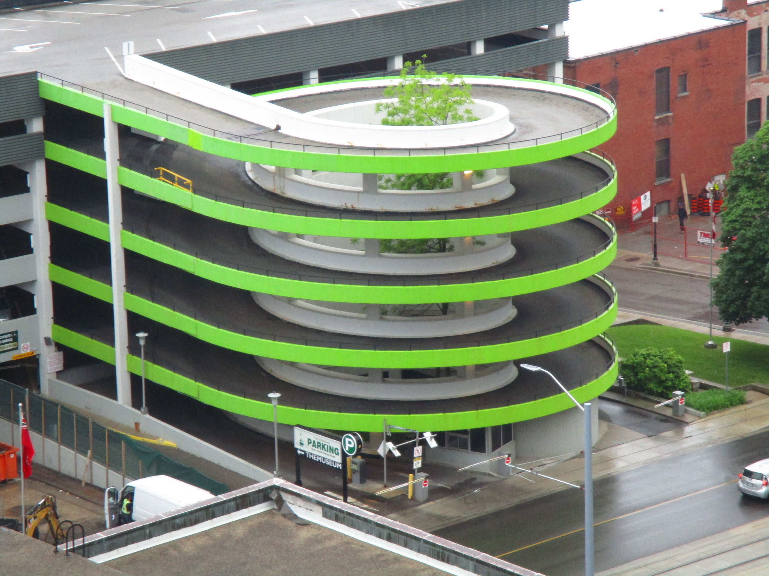 I've driven and walked by the Duke Street parking garage many times and, until last year when we moved back to the city, I had no idea there was a tree growing in the middle of the ramp. It complements the green paint quite well.