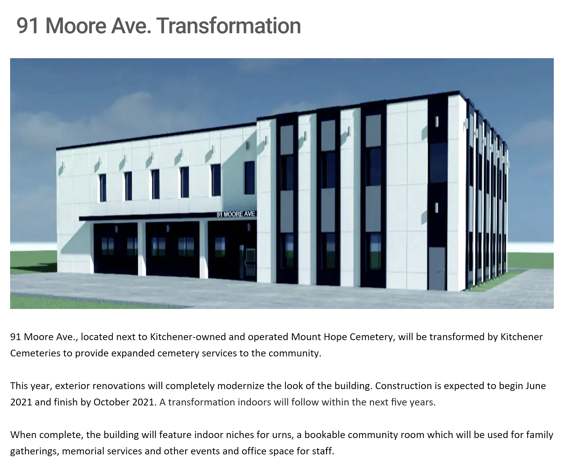 91 Moore Ave., located next to Kitchener-owned and operated Mount Hope Cemetery, will be transformed by Kitchener Cemeteries to provide expanded cemetery services to the community.