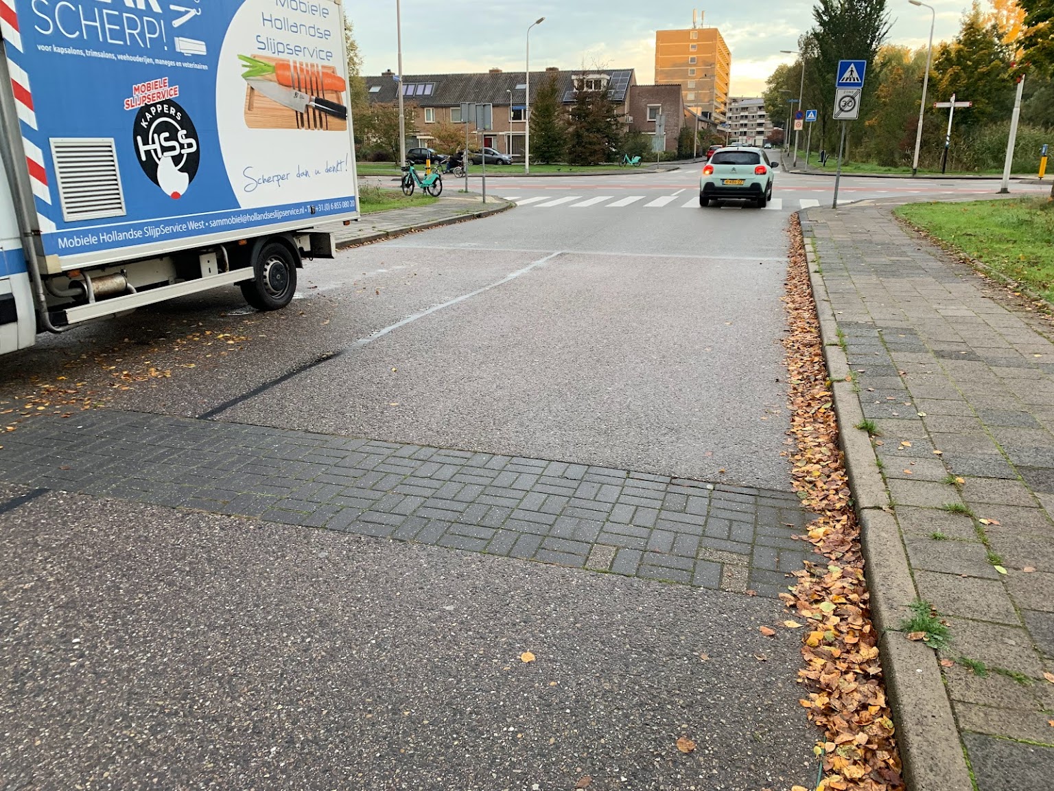 I remember reading somewhere that these bricks across the road are used as an additional traffic calming measure in the Netherlands (they are noisy and cause a slight vibration...less than a speed bump but still something, and cheaper and quieter than doing the entire road in brick), but I cannot find the source. To me, it looks like a road repair patch. Does can anyone confirm or deny either theory with a source?