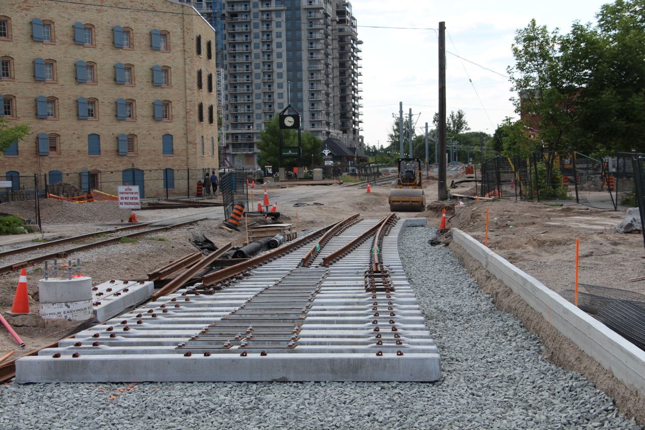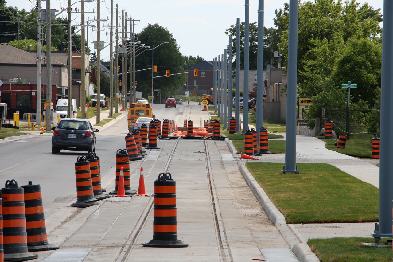 Crews were also working along the spur through University of Waterloo. Looks like they're preparing to install the deck plates for the pedestrian crossings.