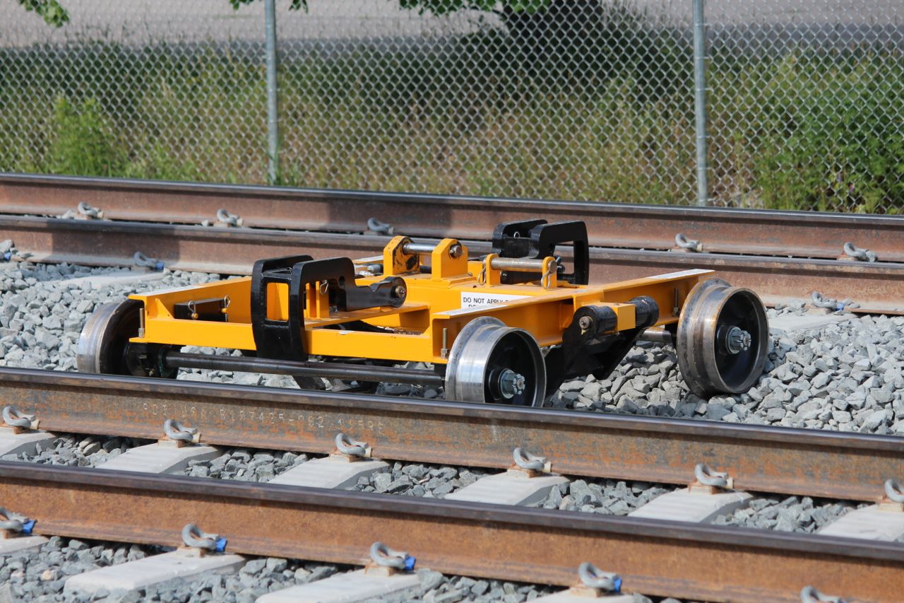 Track switch for freight in Waterloo Town Square.