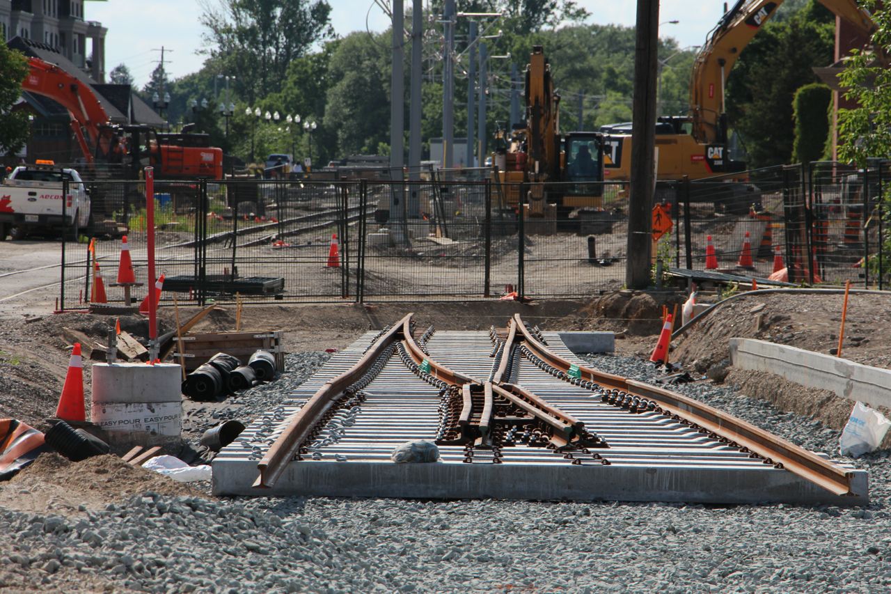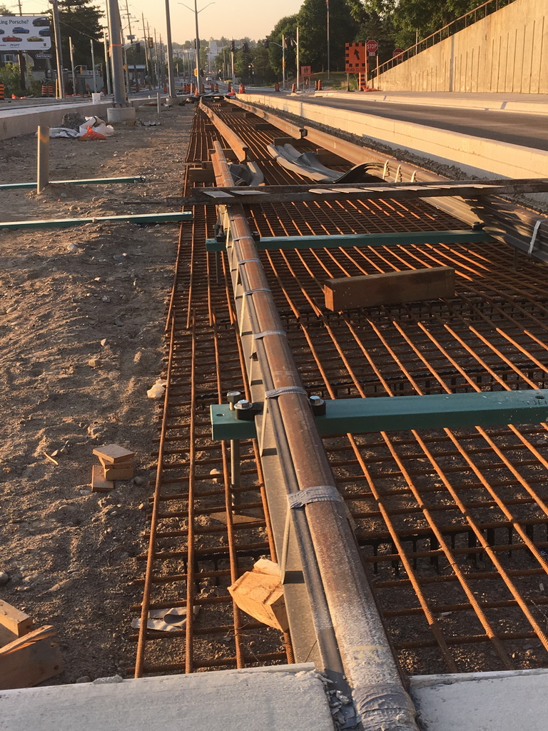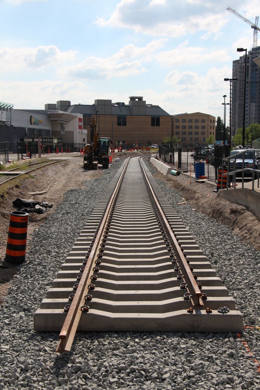 Track for the new freight line has gone in. This is the switch where the freight traffic will connect to the ion track. Another shot of the new freight line.