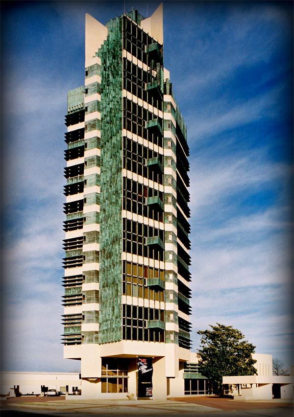 It’s a shame that the imagination of the late Frank Lloyd Wright could not have been channeled by circumstance and era to the highrise structure. This is one of his rare realized tall buildings. I have not viewed it in person, as Bartlesville, Oklahoma is not on my bucket list of cities to see.