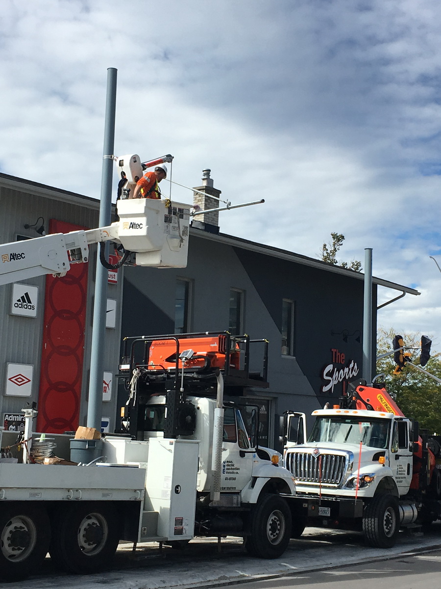 Cat pole construction at Charles/Ontario! Not sure what the horizontal arms are actually called ...