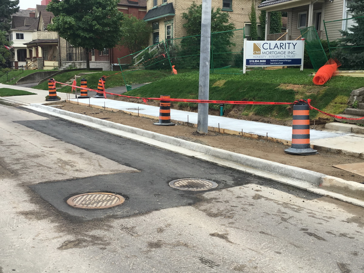 Sidewalks alongside the Bauer lofts were also poured today, proving that those hydro poles in the middle of the sidewalks really WERE temporary.