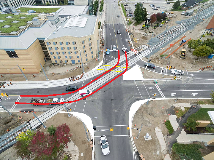 Even without the buses staying on the tracks as much as possible, most of the proposed island extension space will never be used by vehicles and could have been sidewalk instead of road. I’m interested to see what it looks like when the snow comes and there is a big peninsula of undisturbed snow sticking out from the island.