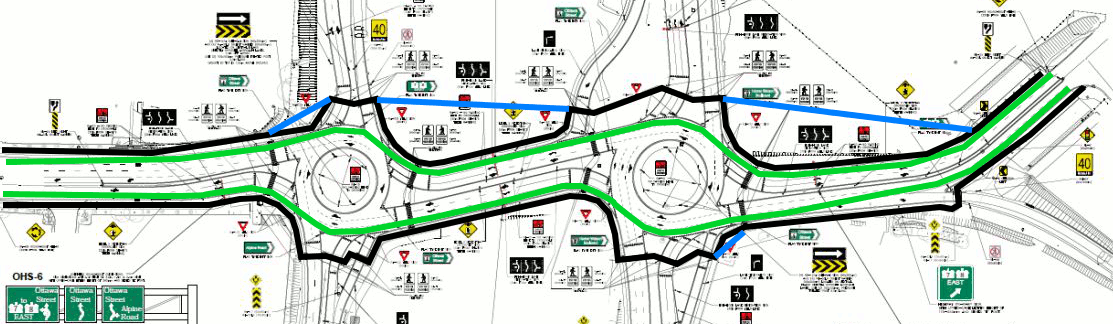 For the Ottawa/Alpine roundabouts, my biggest grief is with the treatment of the sidewalks.
