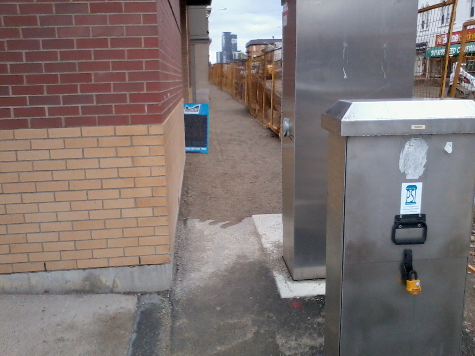 The situation is that they are in the process of rebuilding the new King St streetscape, but some of the utility boxes that were placed last year from Ion construction are limiting the available detours because of their placement in the middle of the existing/future sidewalk.