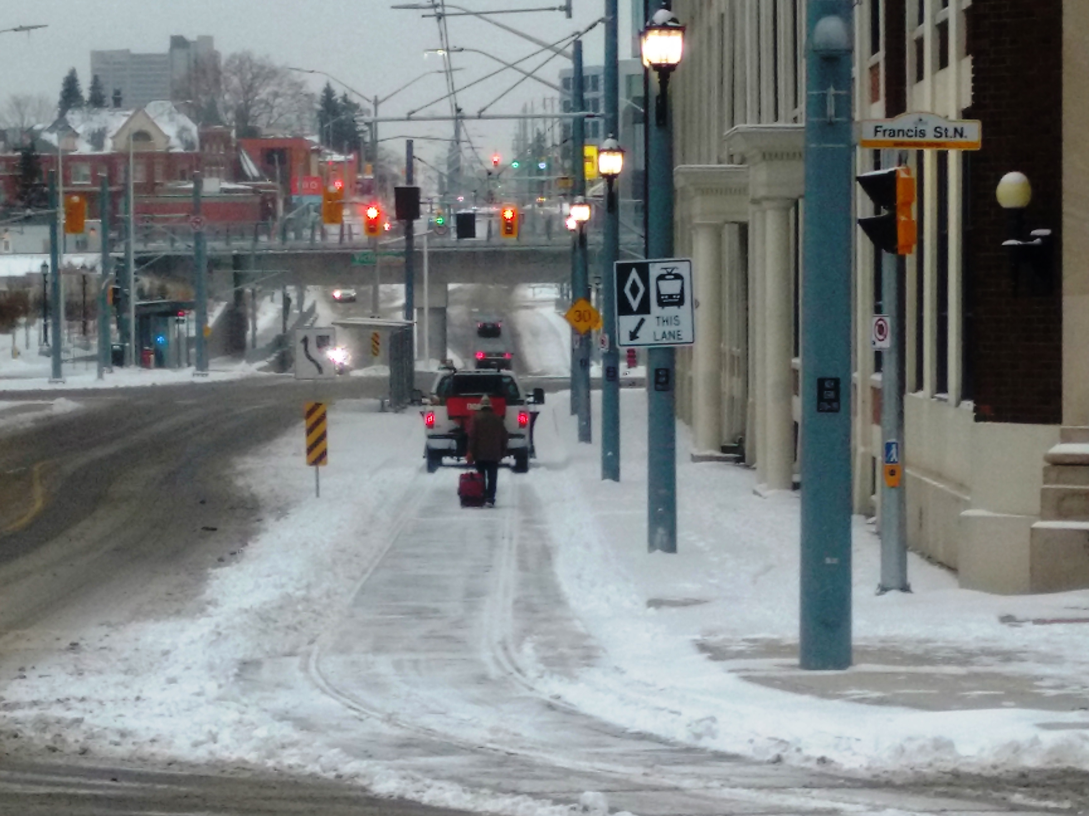 I noticed someone dragging a suitcase through the snow skip over onto the freshly plowed tracks as the sidewalk they were on hasn't been cleared yet. How not, I guess.