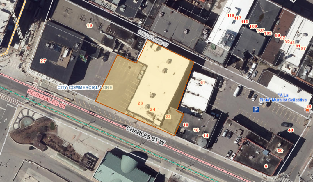 (03-21-2022, 03:15 PM)taylortbb Wrote: To make this clearer, here's the property boundaries from the Kitchener GIS system. It's half the parking lot, and both the 24 and 22 Charles St W buildings (which I understand to be pretty much one building internally). Based on looking at the ownership data I don't think In8 owns any of the adjacent properties.
