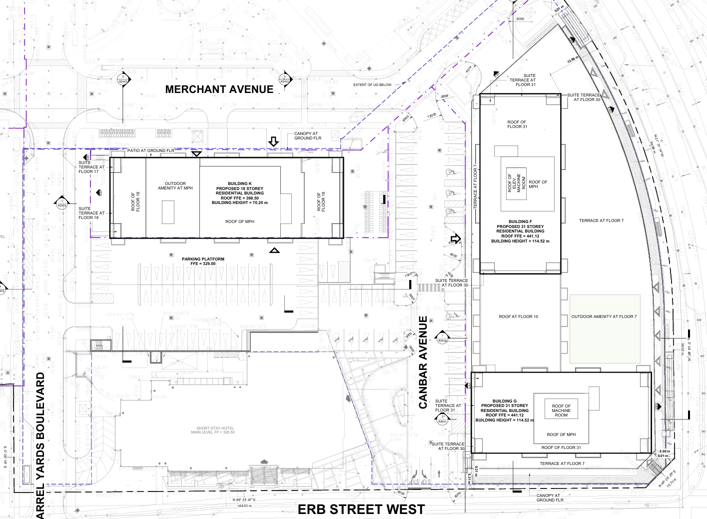 Auburn has submitted a ZBA/OPA for the last 3 buildings on the site (the one between the Delta Hotel and the existing towers (K), and the two fronting Father David Bauer(F/G)).