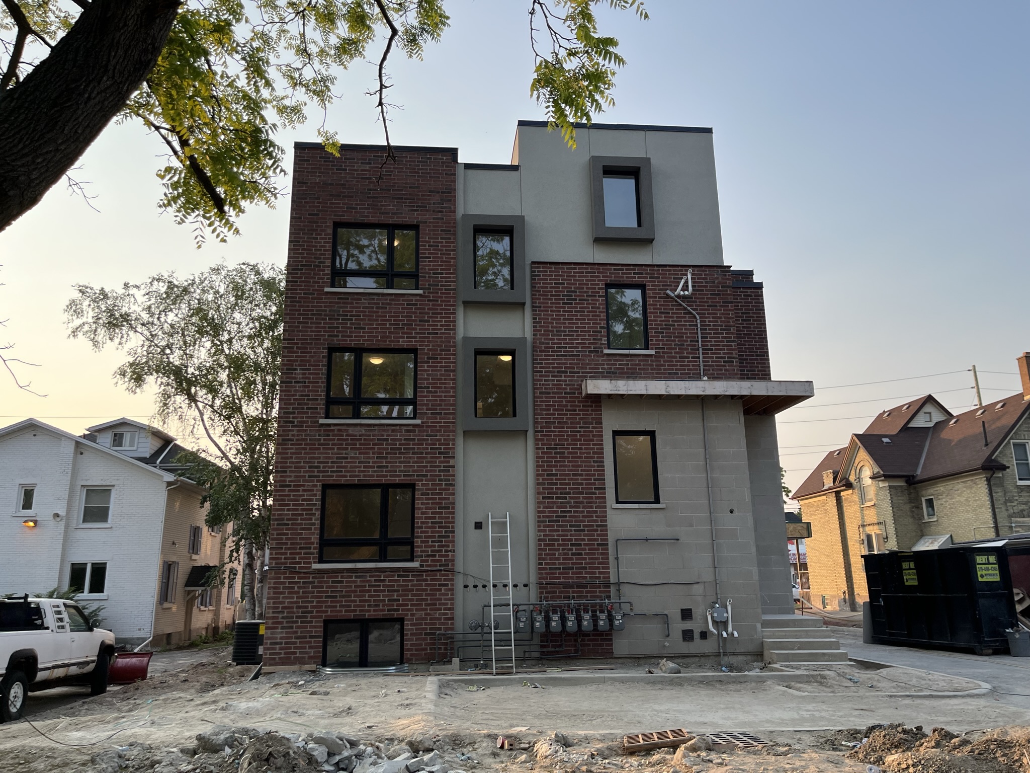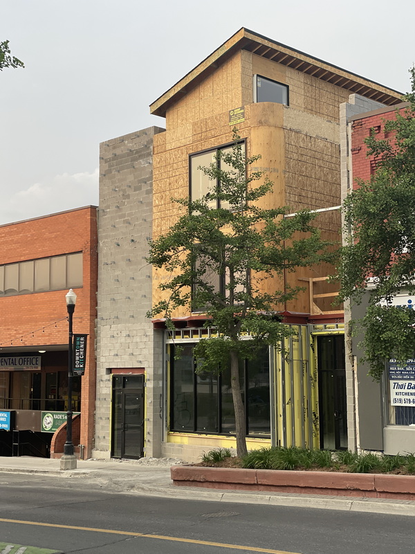 (06-07-2023, 03:06 PM)tomh009 Wrote:(10-10-2022, 05:32 PM)tomh009 Wrote: Construction is under way at 293 King St E. Three (narrow!) stories, retail on the bottom and residential on the top two. Concrete block construction should see this one finished relatively quickly. It sounds even more fantastic in the real estate sales blurb (asking price: $2.99M). Quote:Situated in the revitalized Market District of Kitchener, this newly constructed three-story, mixed-use development is a prime commercial and residential investment opportunity. The ground floor of the building offers a spacious 1,482 sq. ft. commercial space. The second and third floors consist of residential units, comprising four 394 sq. ft. bachelor units and two 701 sq. ft. one-bedroom units respectively. With occupancy slated for August 2023, this property is ideally located for easy access to a variety of local amenities including the Kitchener Market, restaurants, cafes, grocery stores, parks, and the LRT station, enhancing the appeal for prospective tenants. Tech sector employees from industry giants such as Google, Communitech, Apple, and OpenText will find the location particularly advantageous. The property showcases an exquisite architectural design featuring a striking exterior, vaulted ceilings on the third floor, and attractive interiors. The inclusion of numerous balconies and common areas further enhances the appeal. Due to the high standard of construction, no foreseeable capital expenses are expected in the short to mid-term, making this a compelling investment prospect.