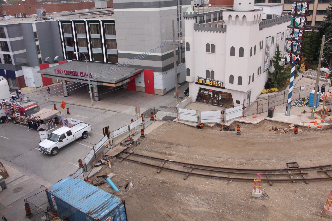 The embedded track on Borden is about half done. Looks like they may have added more rail, but I'm probably imagining it.