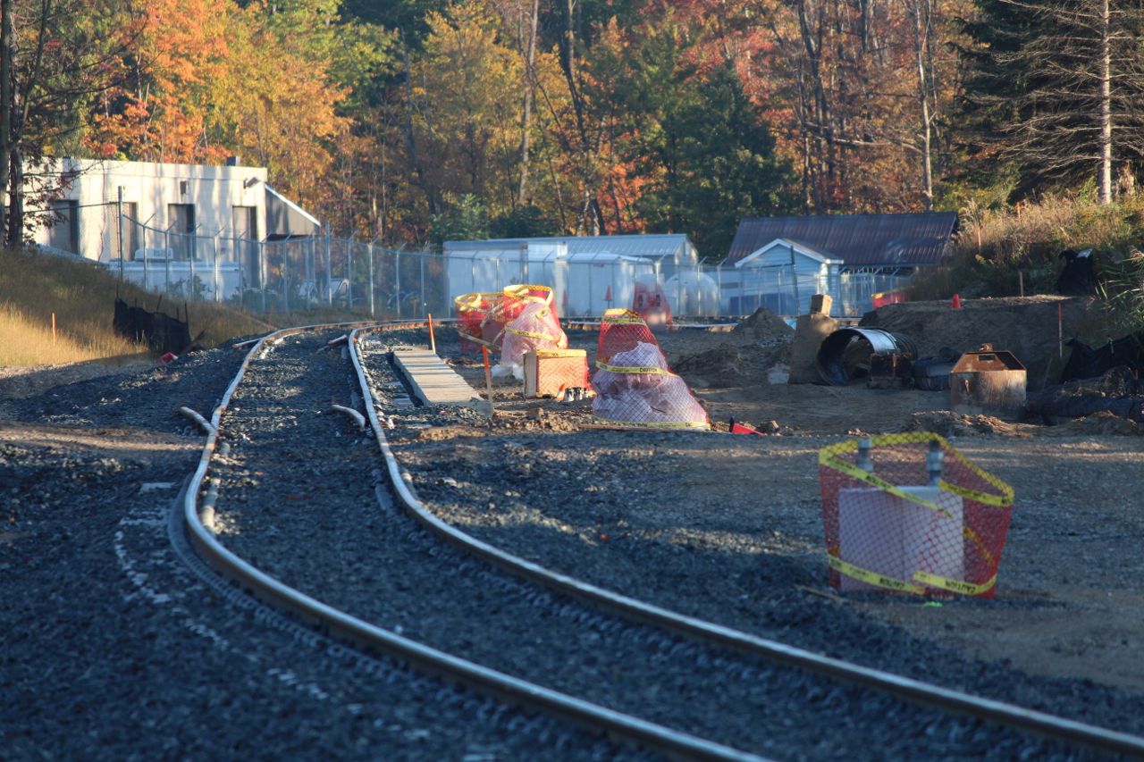 Track is almost completely laid out at Benton — NB and SB. It looks very very good, really cool to see it getting done. The NB track has 3 rails though, not sure why this would be.