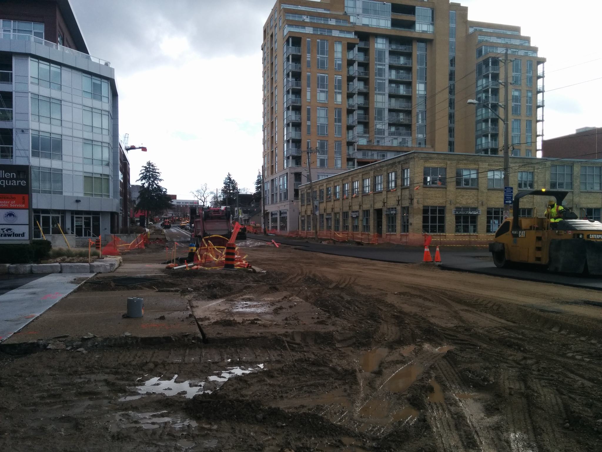 Also: my comment about the remaining rusty fence / grass at Grand River Rocks / the Borden station seems to have been answered; there was a gigantic pit almost ion the Borden / Charles intersection today right where that grass used to be. Dunno why they waited this long to do it!