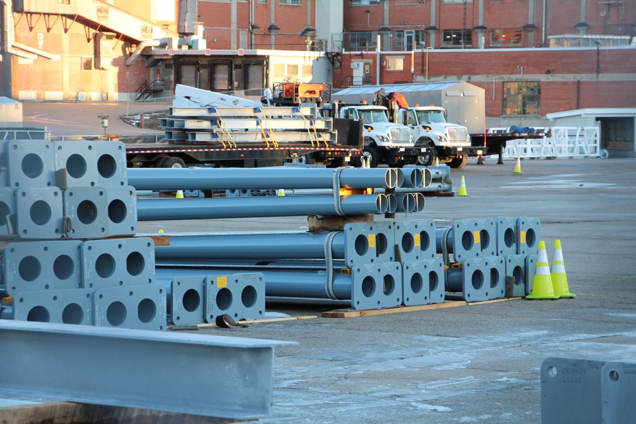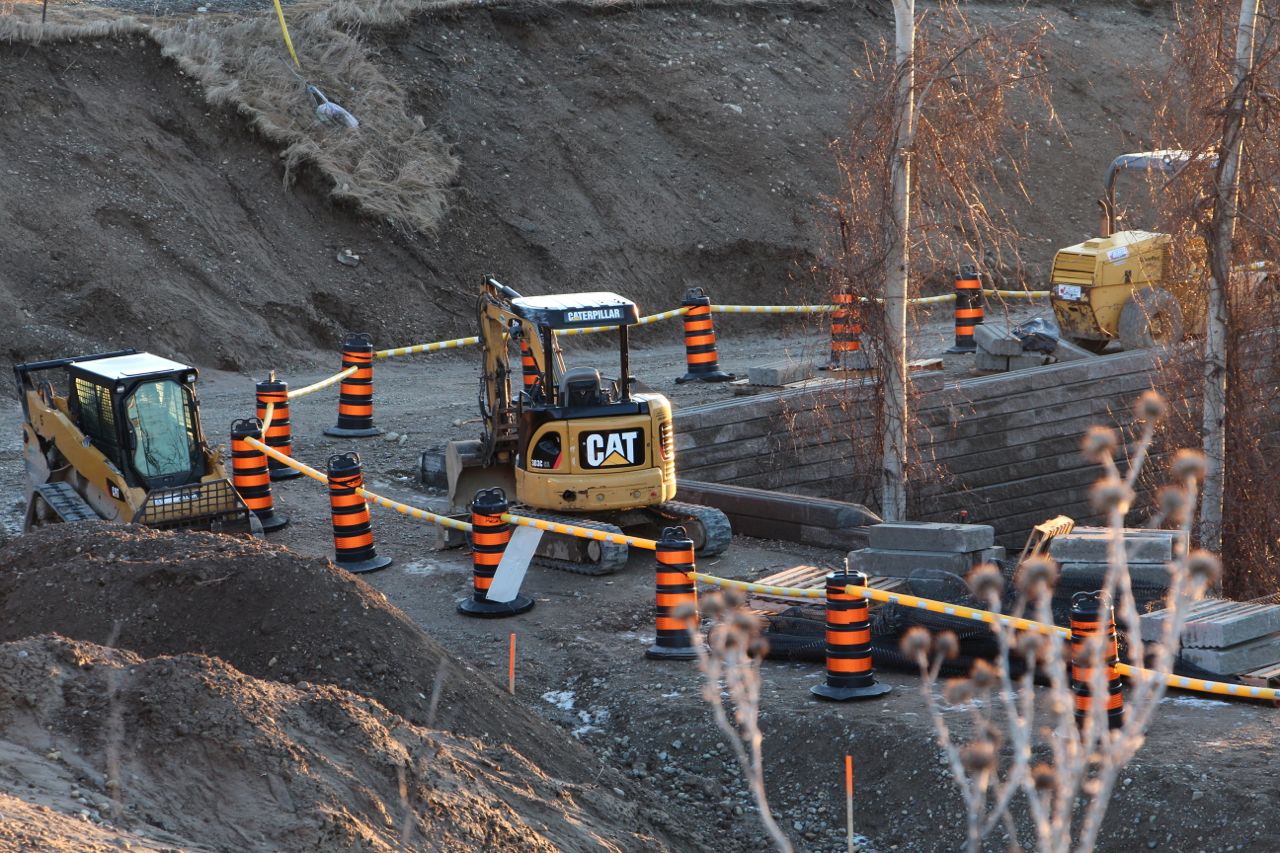 By this late afternoon, they'd laid a few more strips of ribbon rail down across the culvert by Waterloo Park.