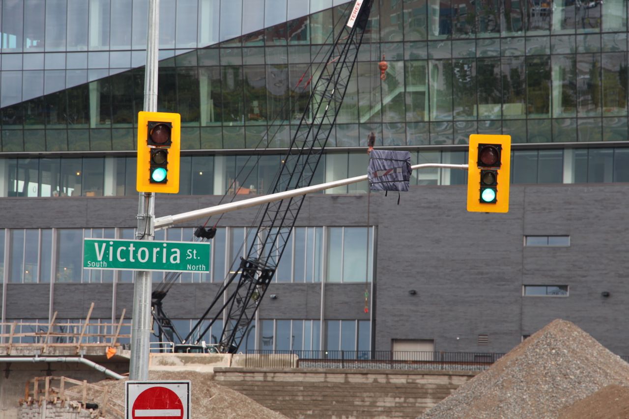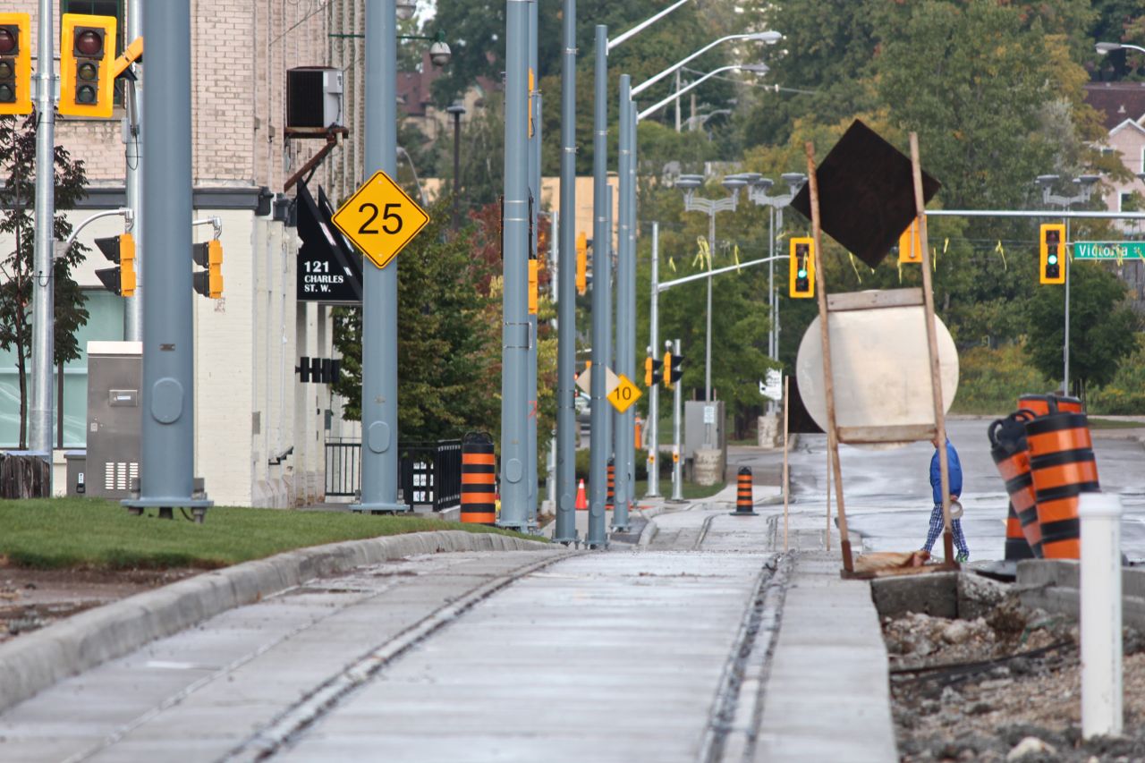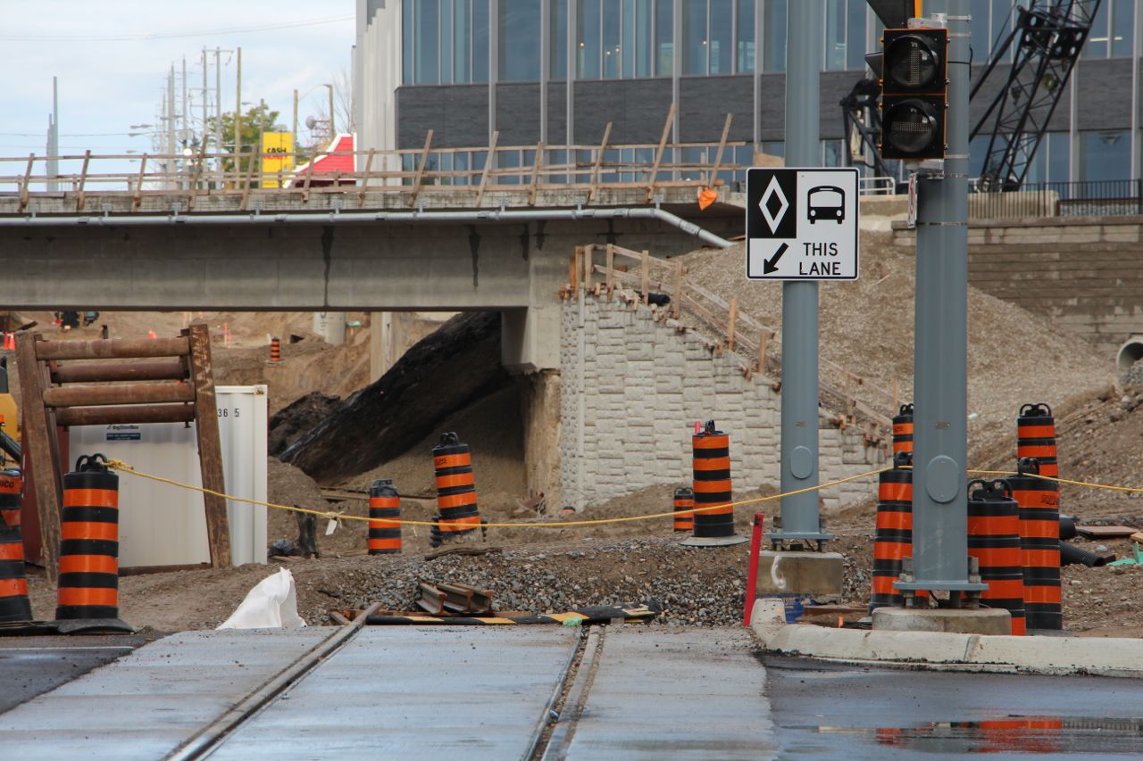 The curious "Bus Only" lane sign at Victoria/Francis.  I'm curious if they gave up on the idea to have buses stay on the road and use that "island platform", and are just going to have them share the rapidway for a short section. Except...