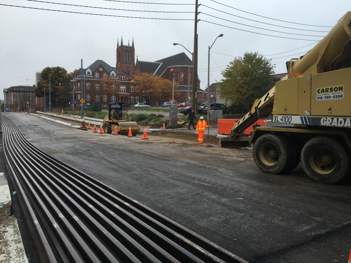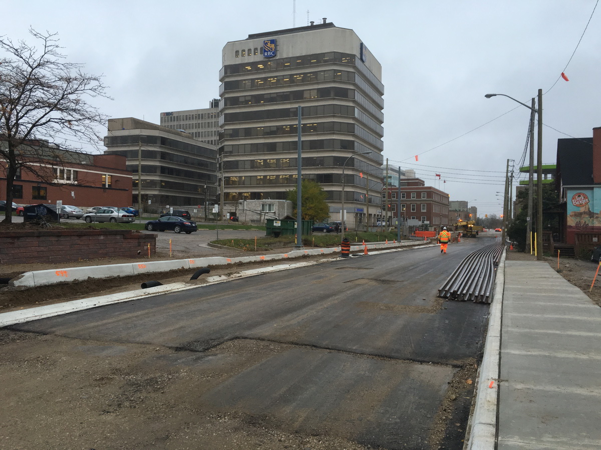 A couple of photos from Duke St today.  There is progress, the curbs are poured, and the roadway is graded, but I can't see that they could open College and Water by the end of October as planned, unless they will just put a steel plate over the (future) embedded track to enable traffic to cross.