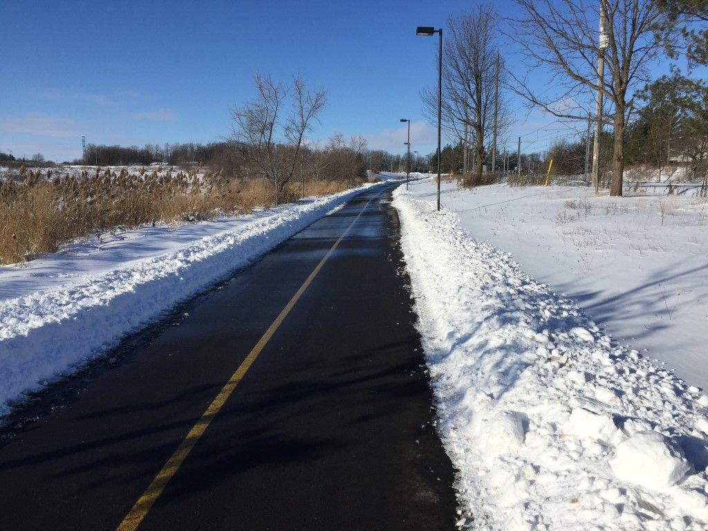 While virtually all roads today were covered in a layer of packed, slippery snow, all the trails I was on today looked like this: