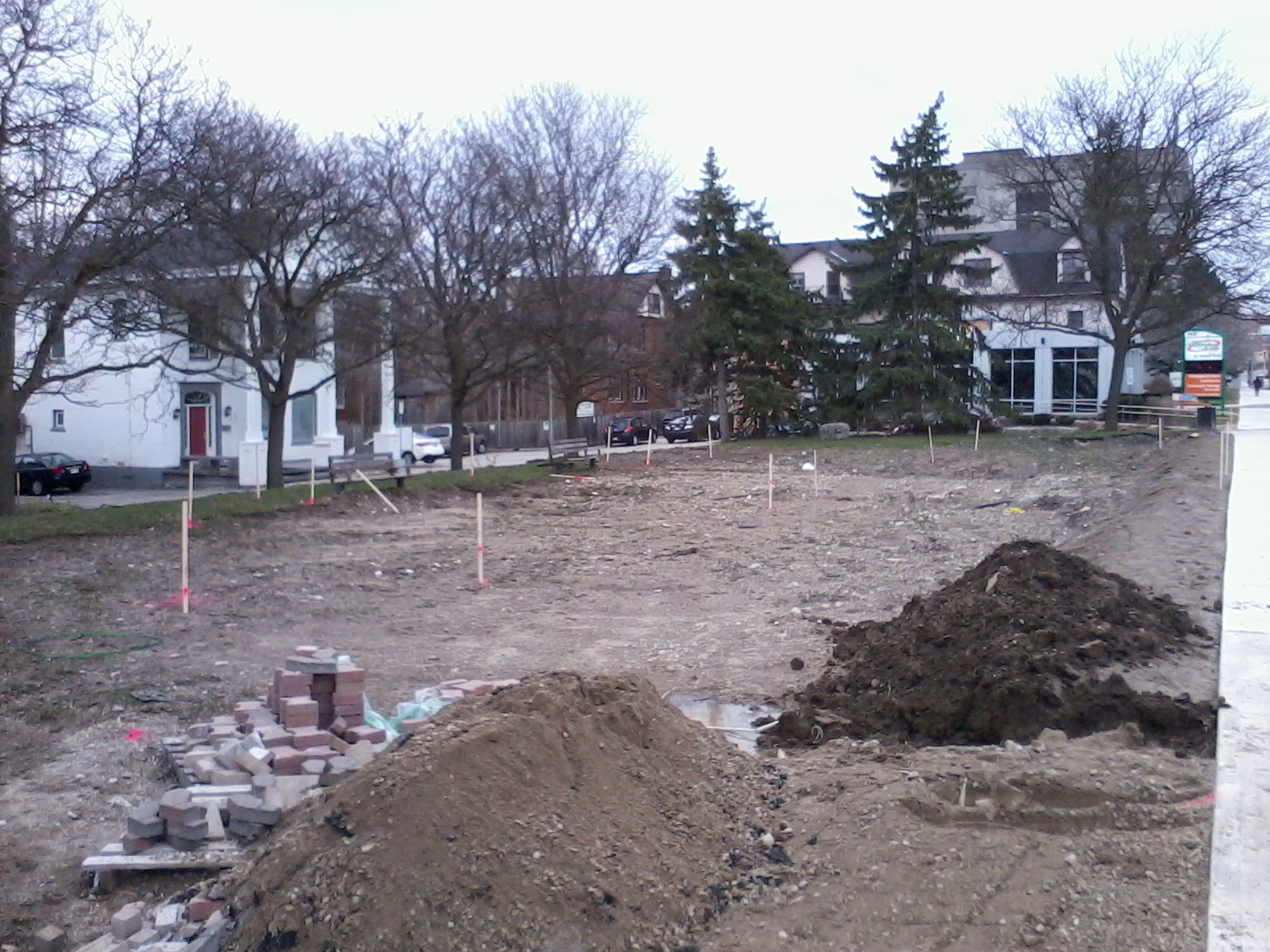Does anyone know what is planned for the green space on the southeast corner of King and William? I think it is called Heritage Green. They took all the concrete planters, steps, etc. out during Ion construction. I suspect GrandLinq is just going to re-grade it with soil and grass, especially now that the previously planned GRT stop will not be here either, but does the city have a plan for the space?